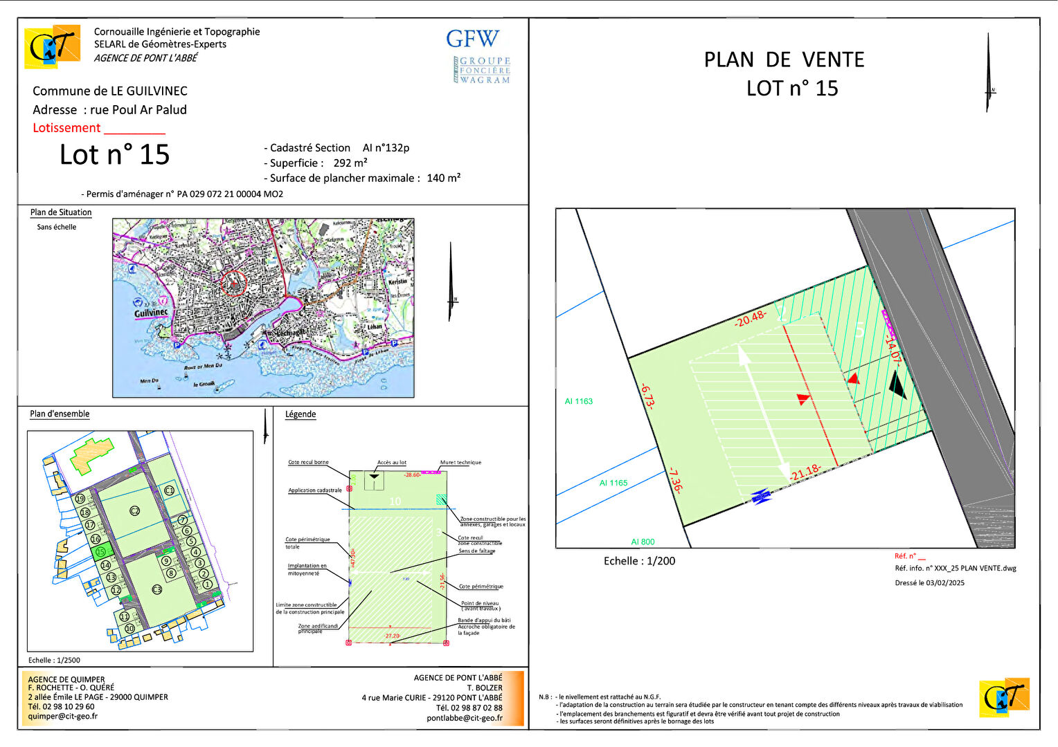GUILVINEC - A proximité des commerces, du port et de la plage. Venez découvrir ce terrain en lotissement de 299m2 (lot n°15), livrable entre Juin et Septembre 2025. Le terrain sera viabilisé et raccordable au tout-à-l'égout.