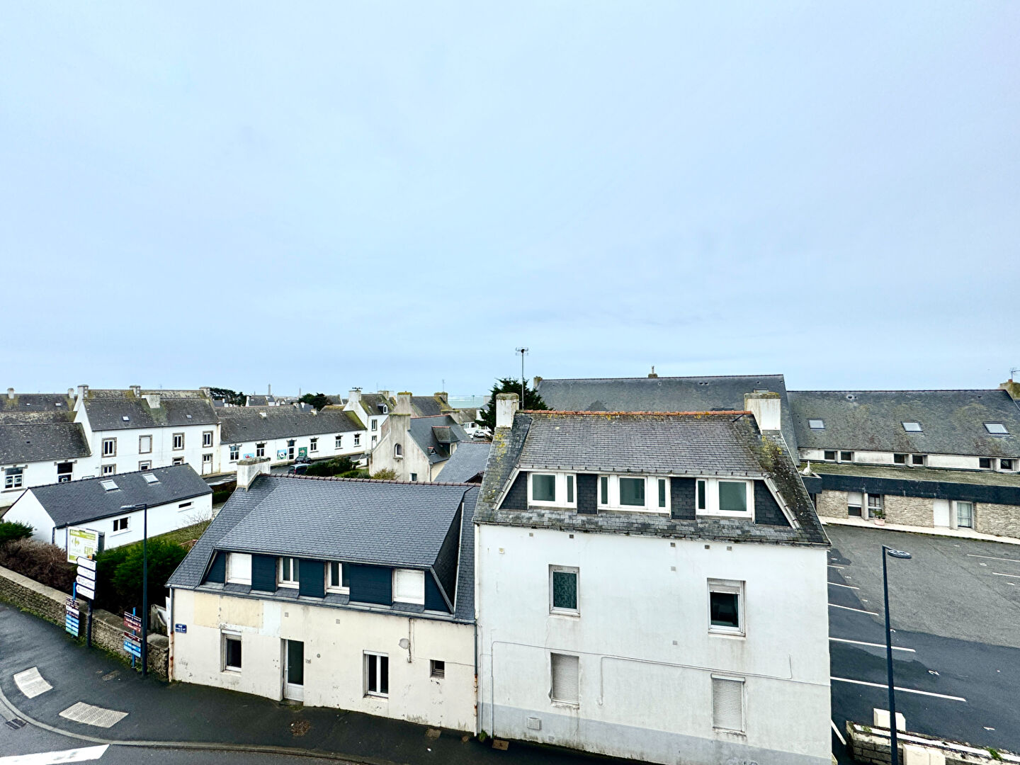La pièce de vie lumineuse se compose, d'un coin repas, d'un salon et d'un petit espace bureau, offrant un cadre idéal pour se détendre ou travailler en regardant la mer.