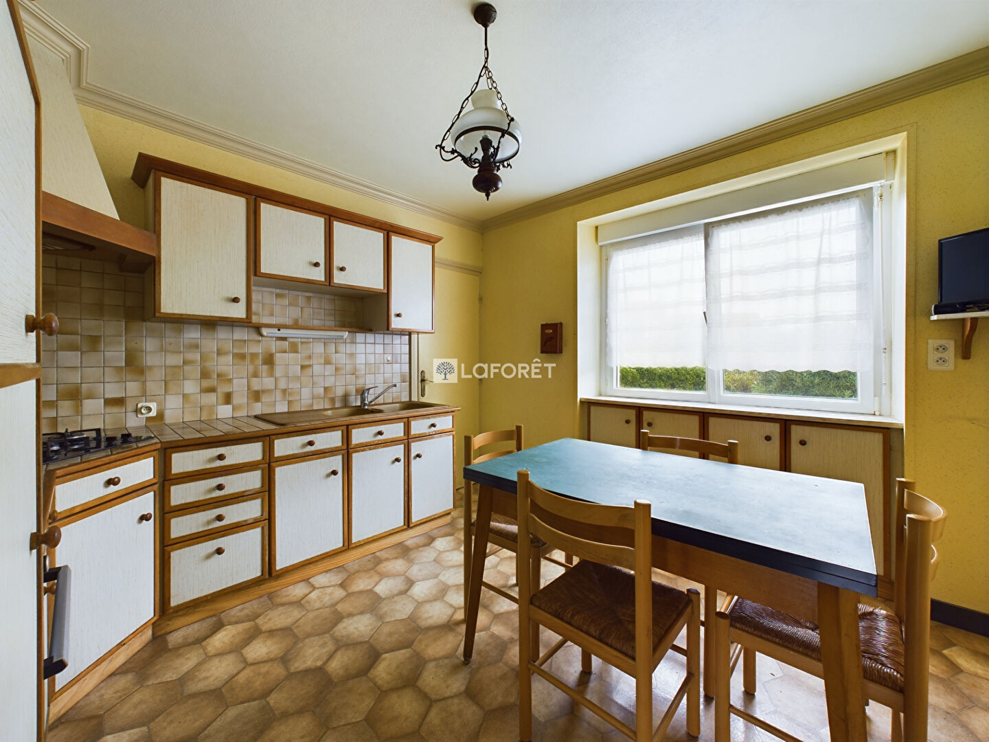 Le hall du rez-de-chaussée dessert une salle à manger, salon, cuisine aménagée, salle de bains, WC