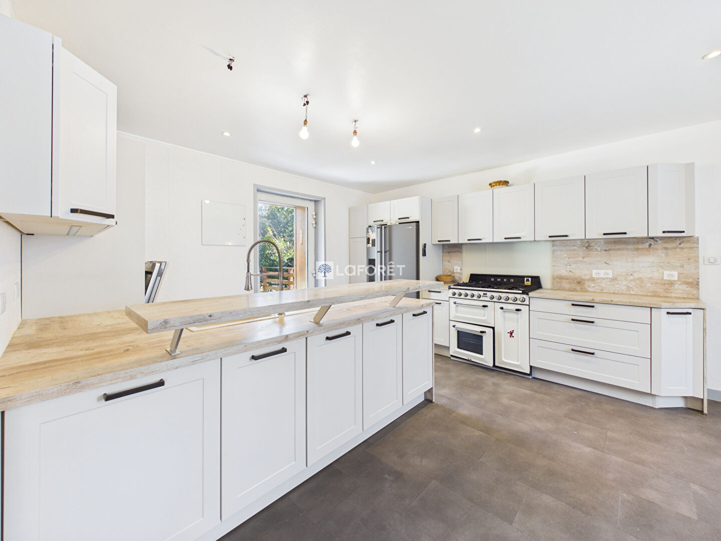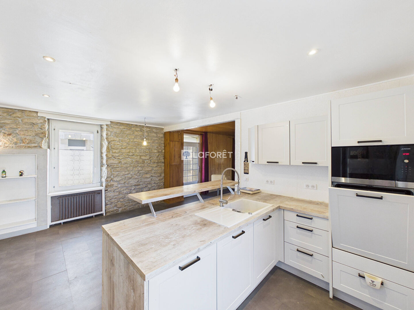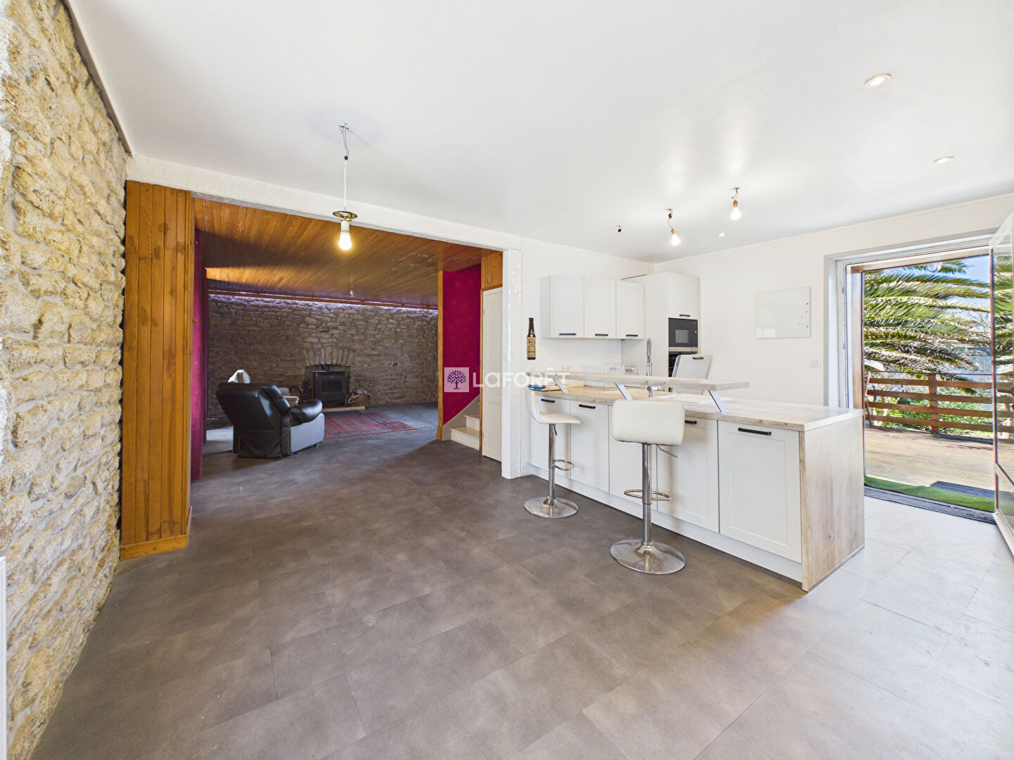 La maison se compose au rez de chaussée d'une entrée, cuisine récente aménagée et équipée ouverte sur un vaste salon-séjour, chambre, salle d'eau et wc.