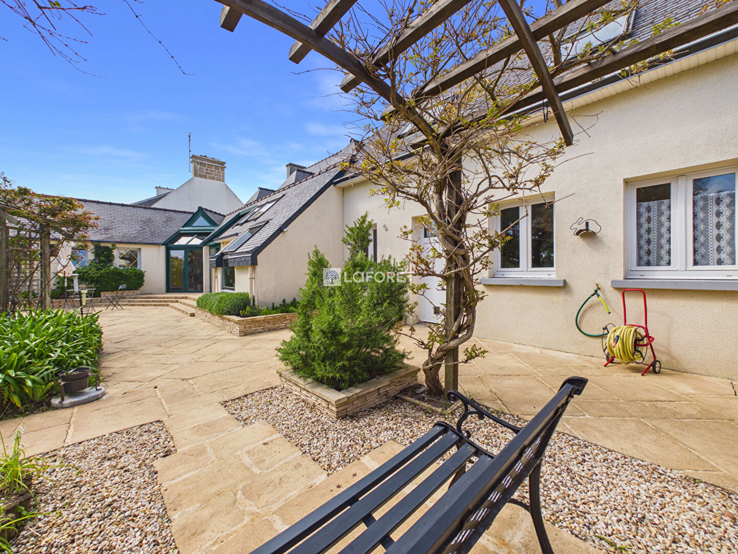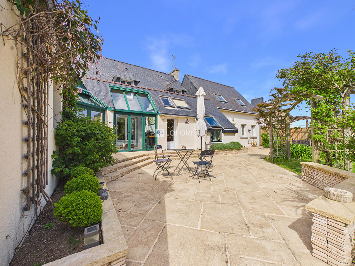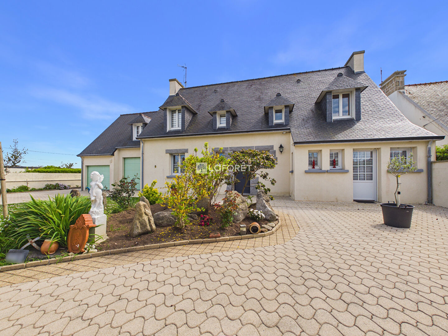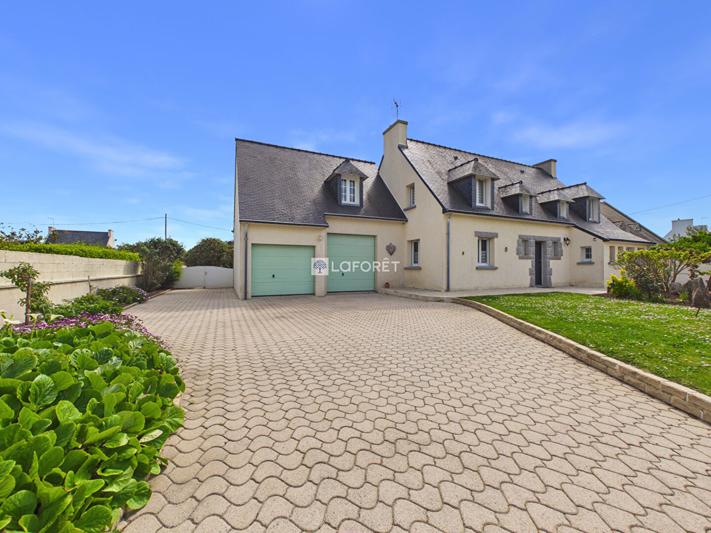Idéalement située dans un environnement calme et recherché, à seulement 5 minutes de la mer et des commodités, cette élégante maison néo-bretonne offre un cadre de vie privilégié, alliant confort, fonctionnalité et qualité de construction.