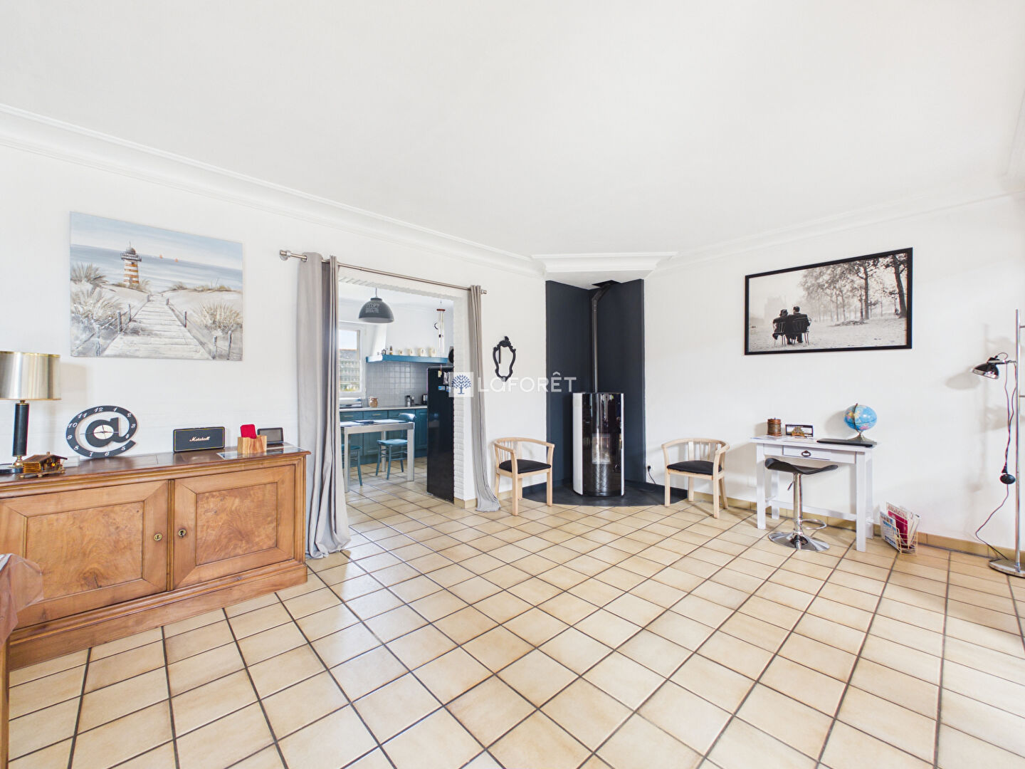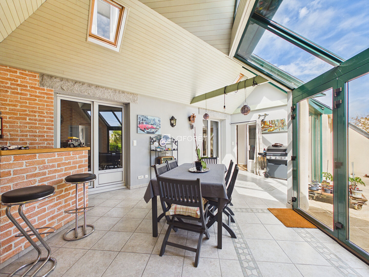 Dès l'entrée, vous découvrirez des volumes harmonieux menant à un salon-séjour lumineux, sublimé par un poêle à granulés, créant une atmosphère chaleureuse et conviviale. La cuisine, entièrement aménagée et équipée, une agréable véranda baignée de lumière, véritable espace de vie supplémentaire tourné vers l'extérieur.