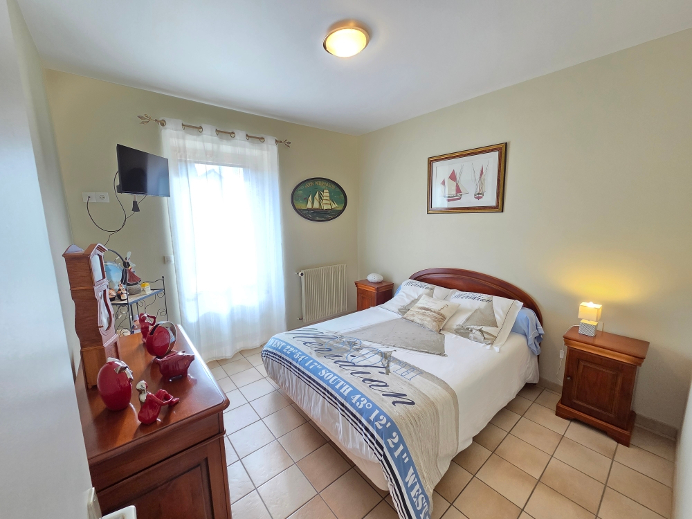 Elle se compose au rez-de-chaussée d'un vaste salon/séjour lumineux, cuisine équipée et aménagée, deux chambres dont une avec grand placard de rangement, salle d'eau/WC et un WC séparé.