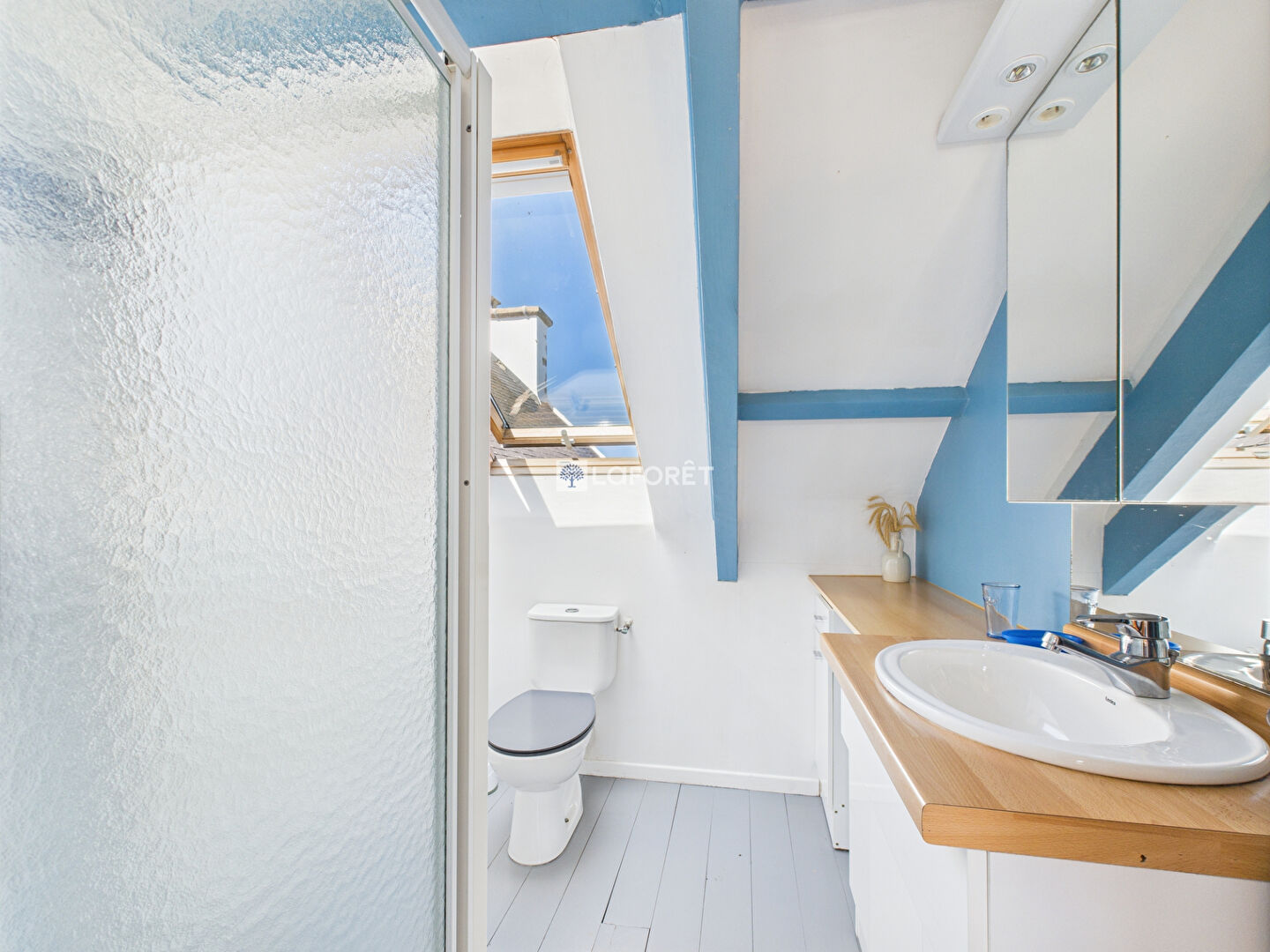 A l'extérieur s'ajoute une belle terrasse bois de 22 m2 pour profiter pleinement de l'ensoleillement plein sud.