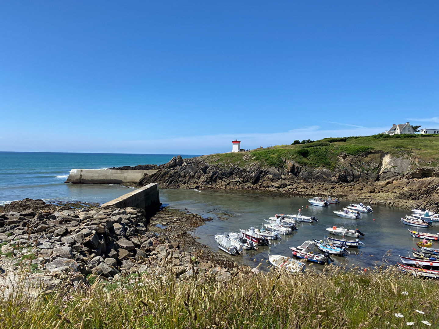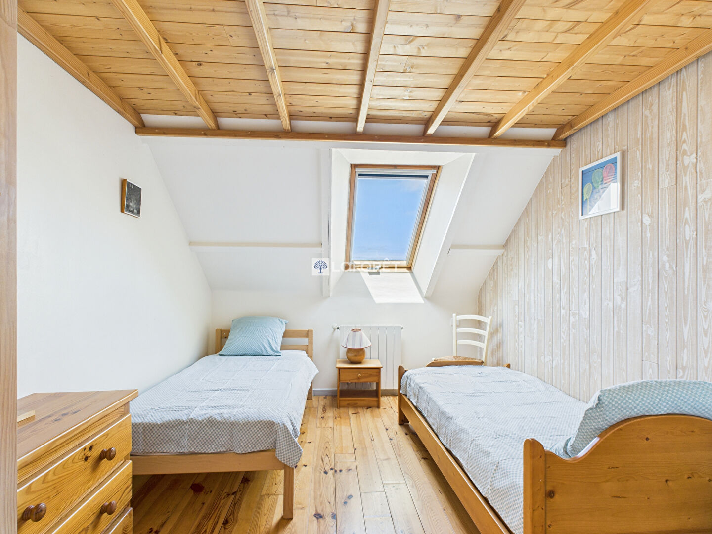 Continuez votre découverte : à l'étage, vous trouverez trois chambres et leur vue mer, une salle de bains, un espace mezzanine idéal pour les jeux et la lecture, une chambre dortoir et une salle d'eau avec WC.