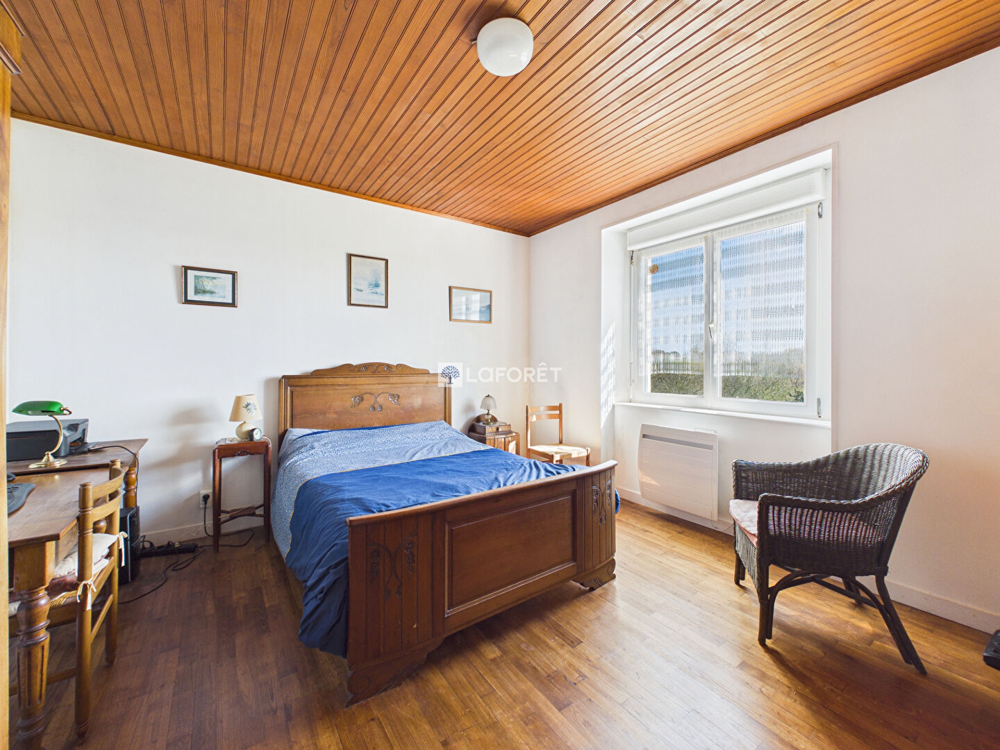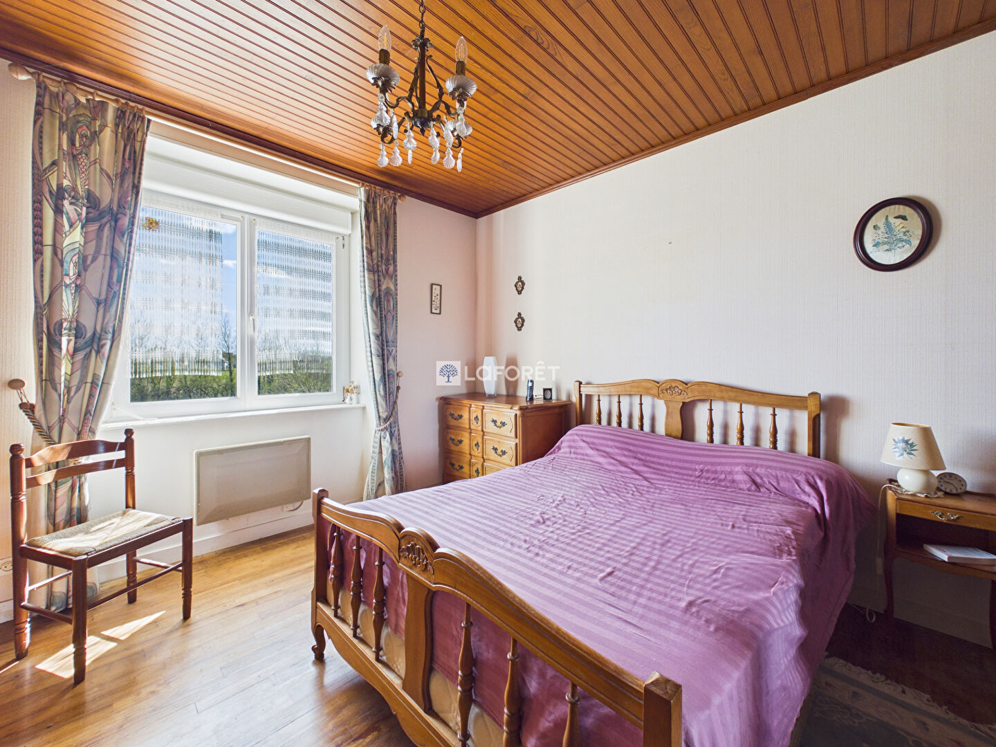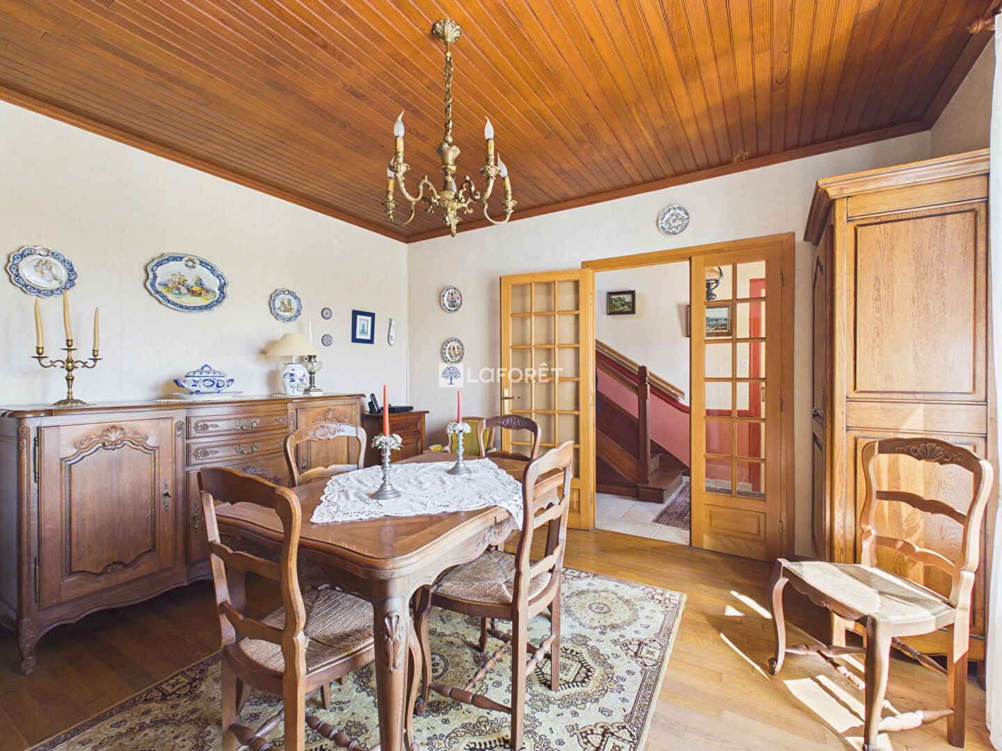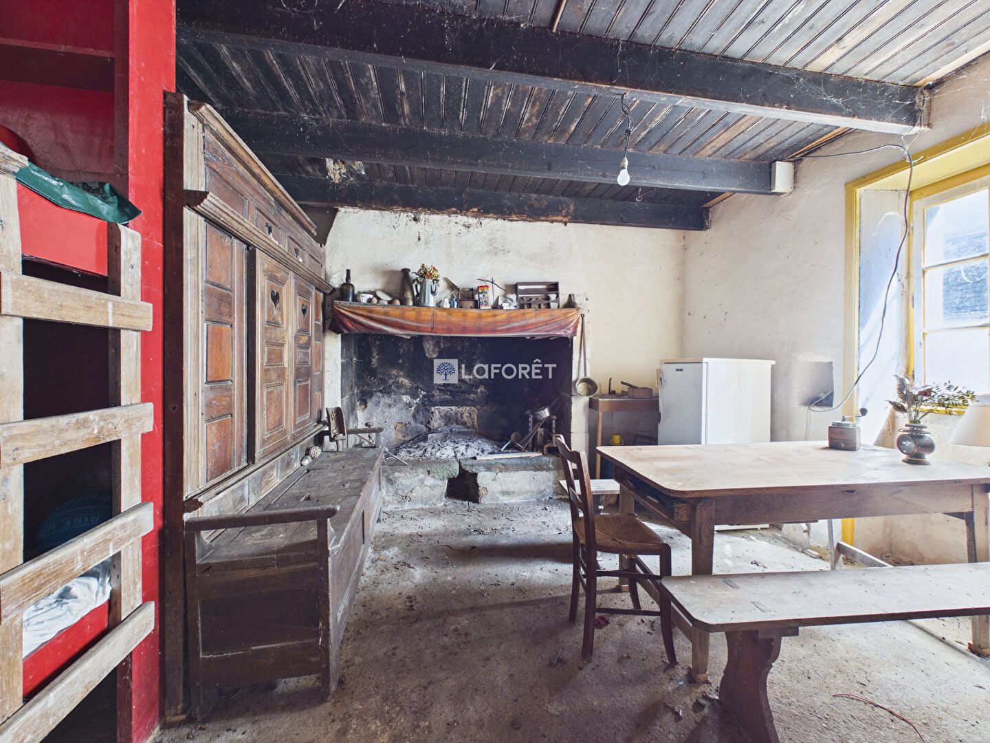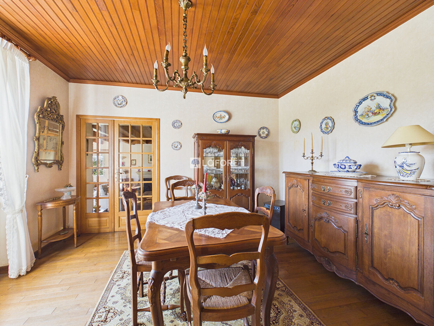 Elle se compose d'une agréable salle à manger, d'un spacieux salon baigné de lumière avec cheminée insert, ainsi que d'une cuisine aménagée et fonctionnelle.