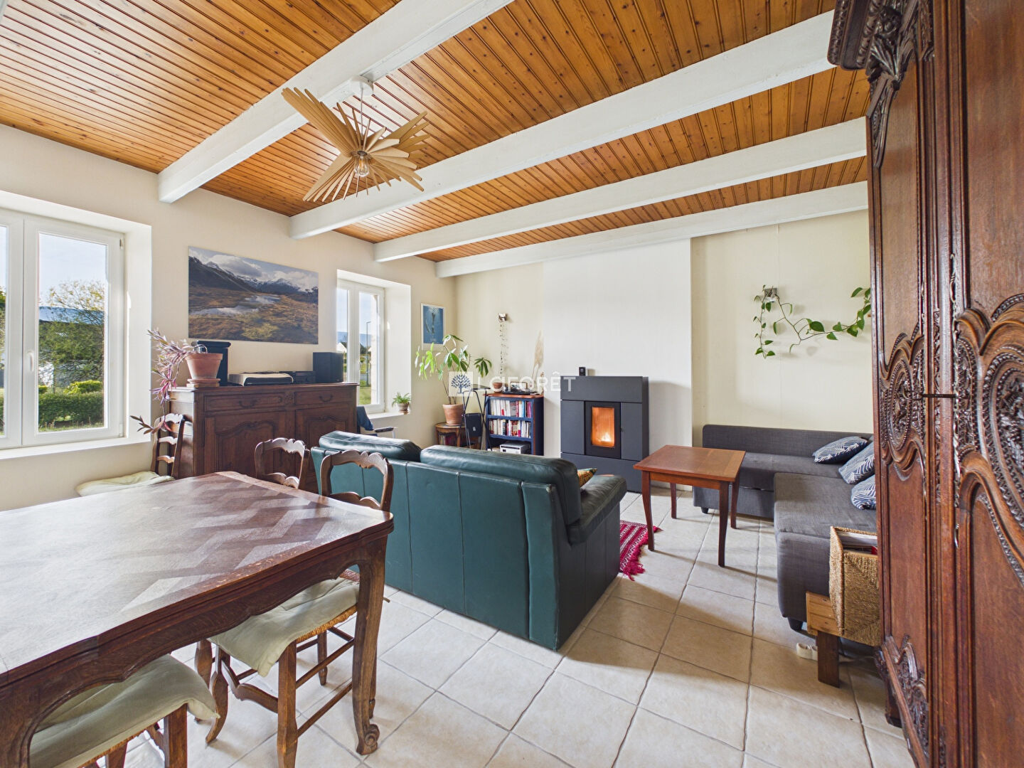 Chauffage : poêle à bois et électrique. DPE : D. Assainissement : conforme.