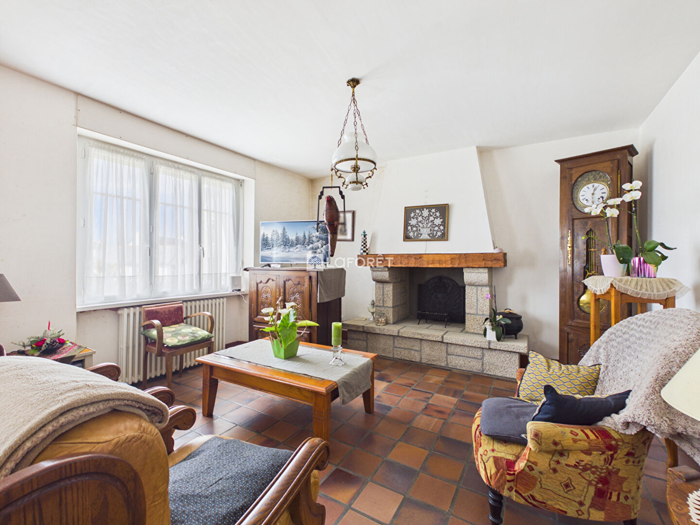 Au premier étage, l'espace de vie principal se compose d'un lumineux séjour avec cheminée ouverte, d'une cuisine, d'une salle de bain, d'un WC et de deux chambres.
