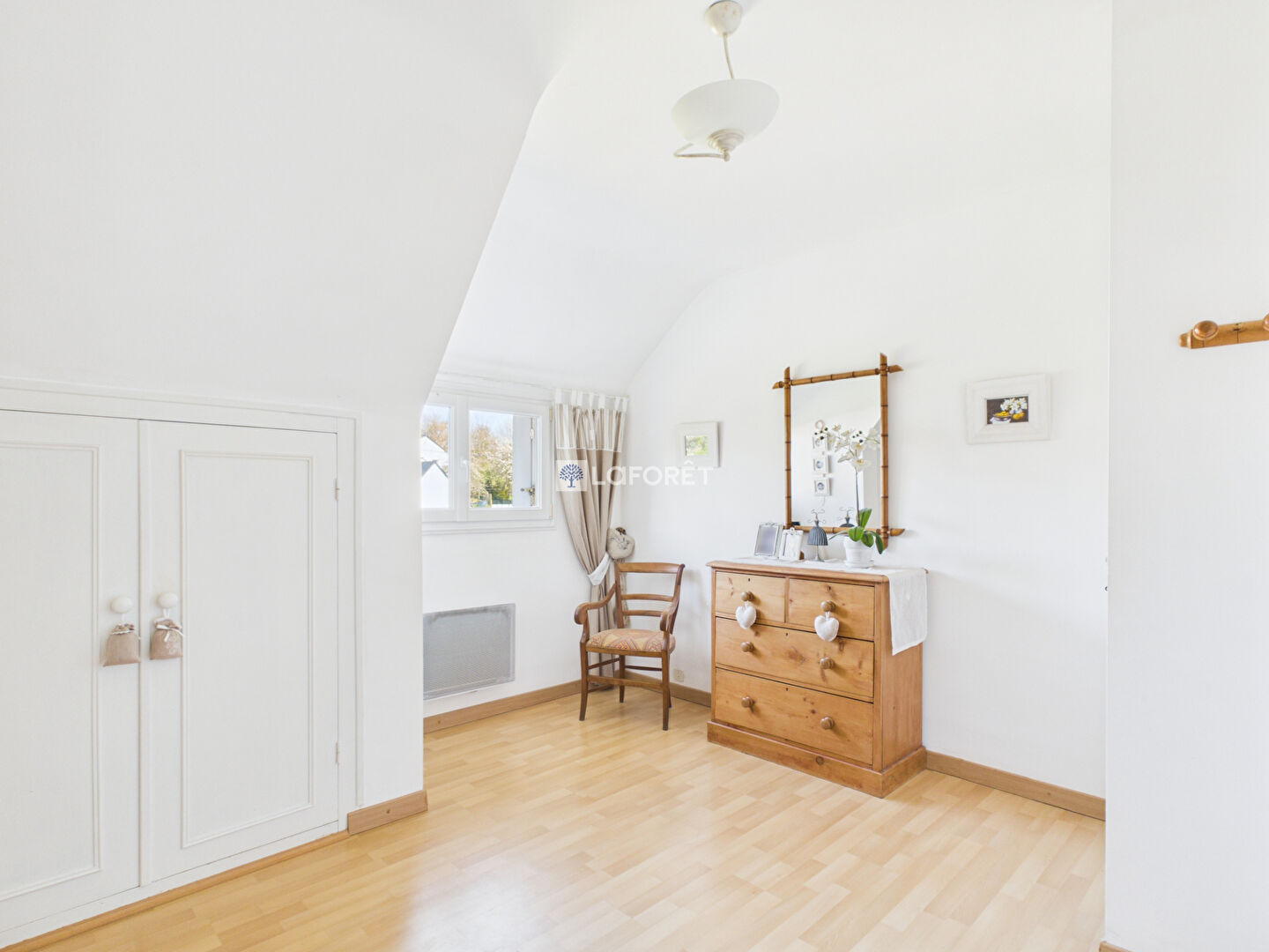 L' étage est composée de 3 chambres avec placards, d'un wc et d'une salle de bains.