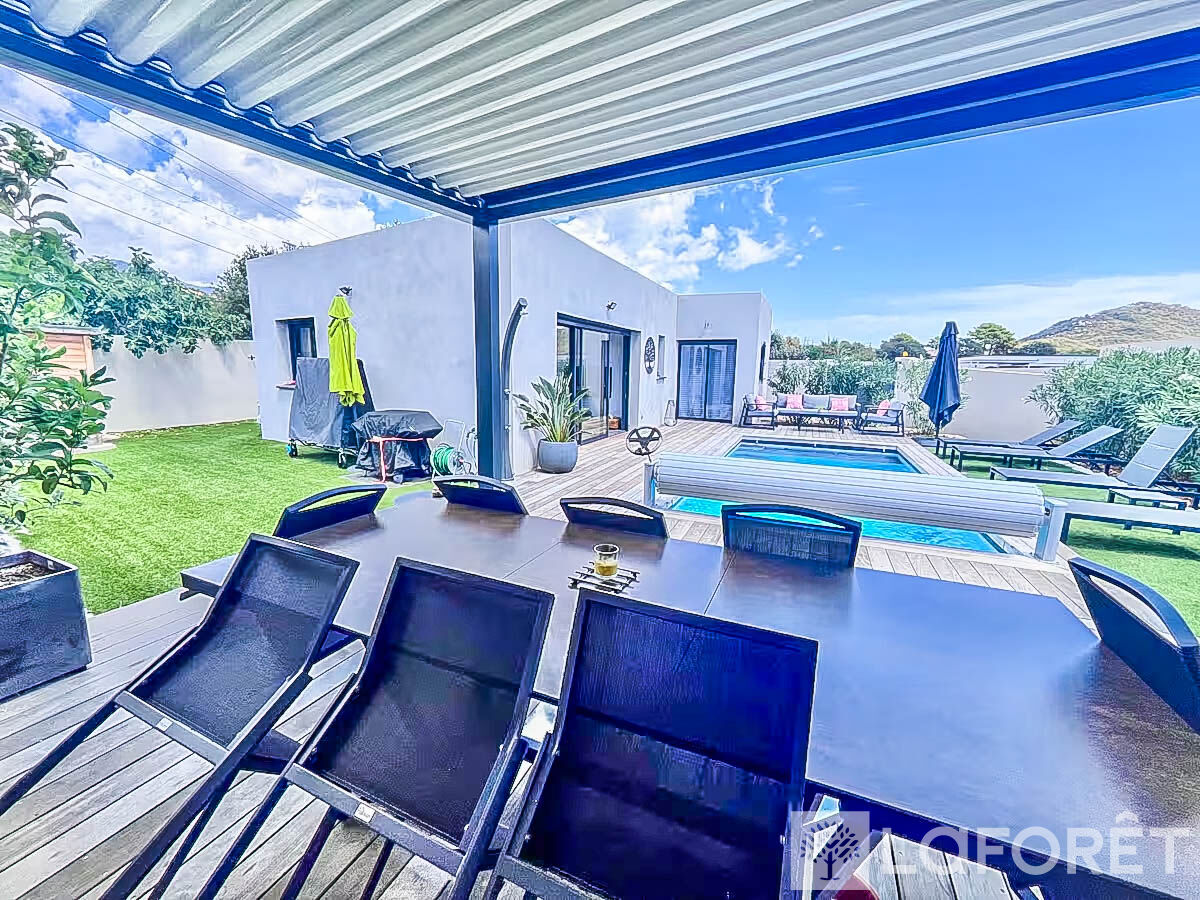PRESTATIONS : piscine au sel chauffée, climatisation réversible dans le séjour et chacune des chambres, volets roulants électriques en PVC, menuiseries en alu double vitrage, cumulus thermodynamique, portail électrique avec digicode, possibilité de stationner 3 véhicules sur la propriété, pergola, et abri de jardin.