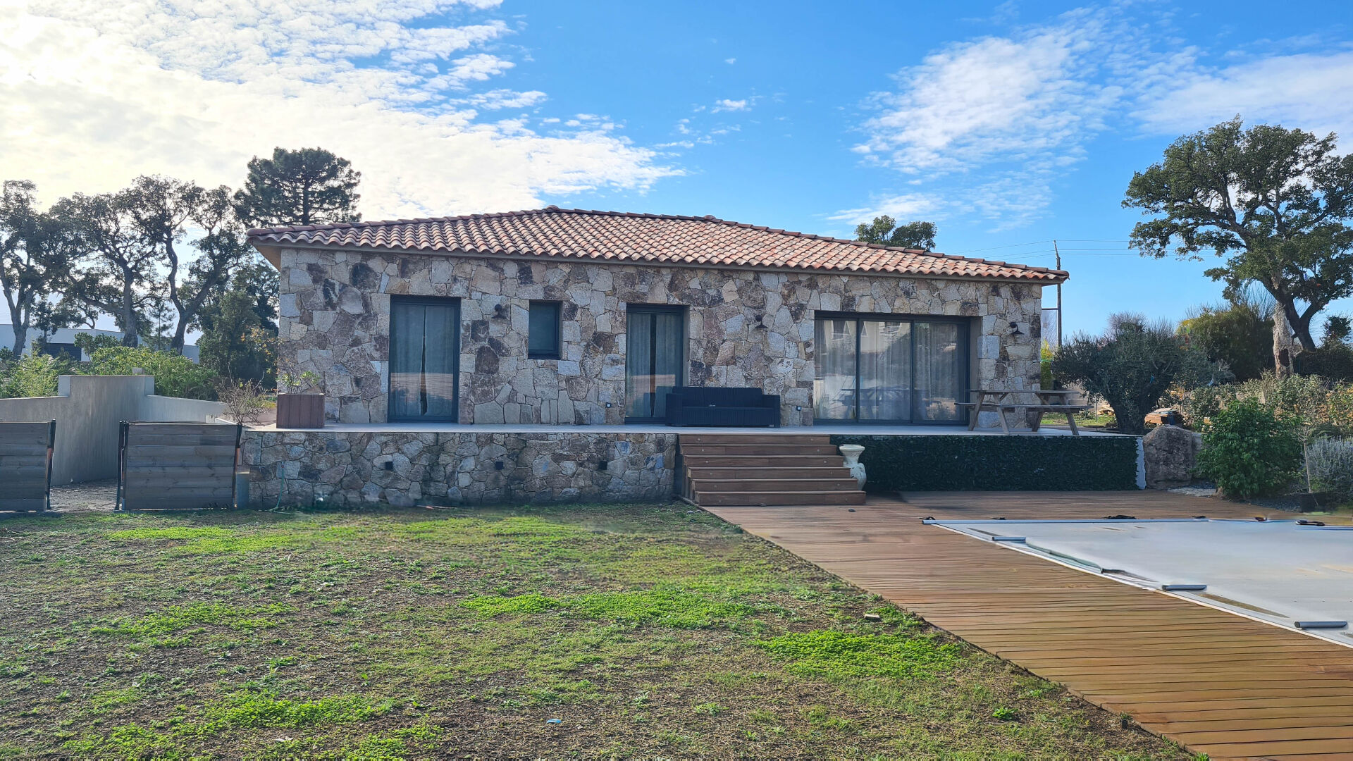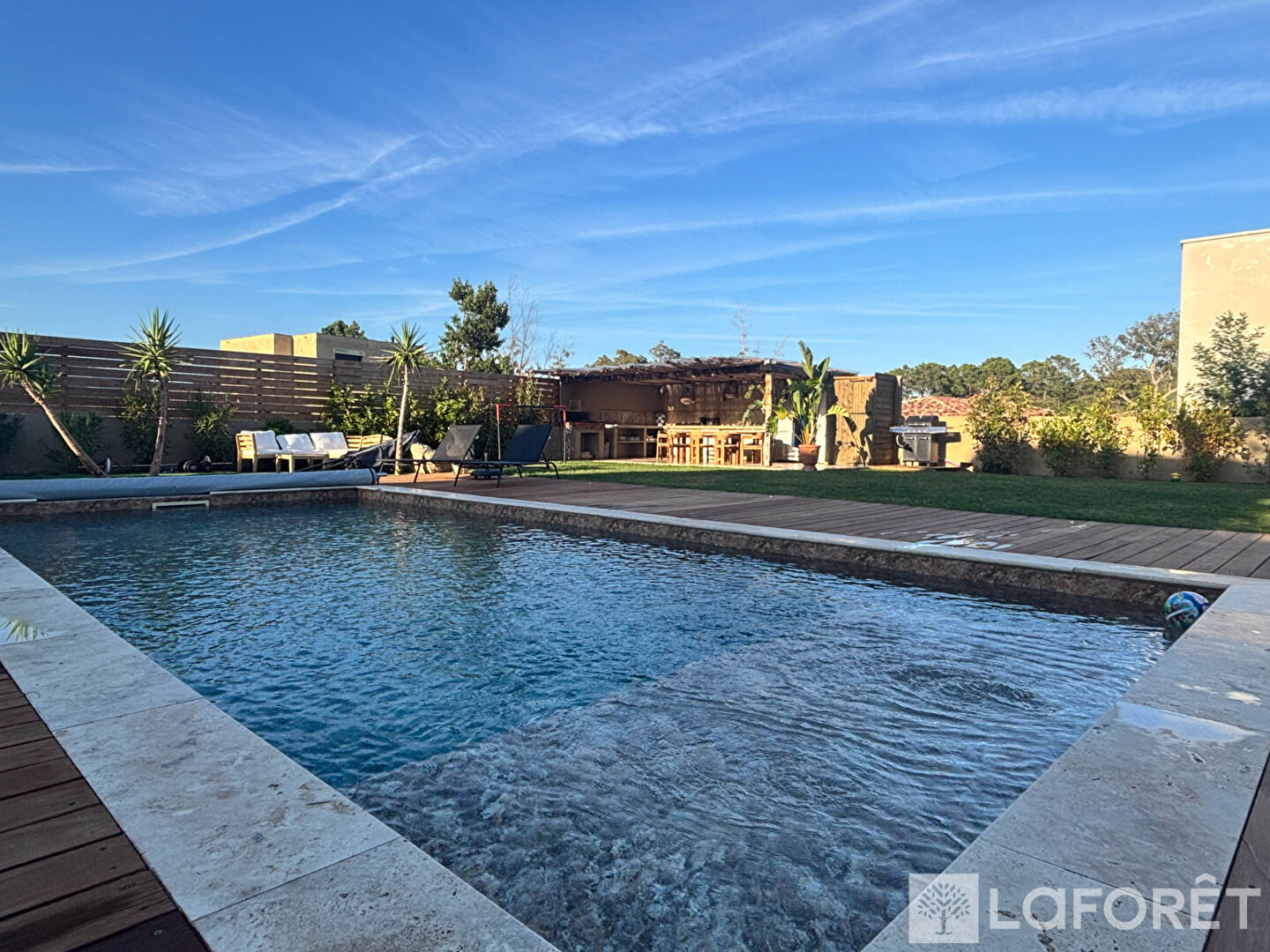L'ensemble se trouve sur une parcelle d'environ 980 m² avec une belle piscine et sa terrasse, une cuisine d'été couverte, et deux aires de parking.