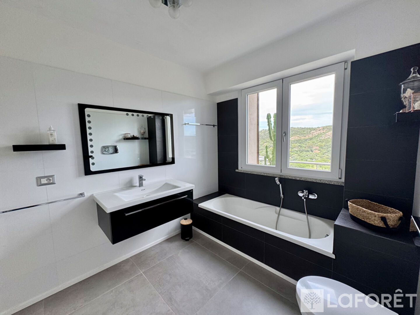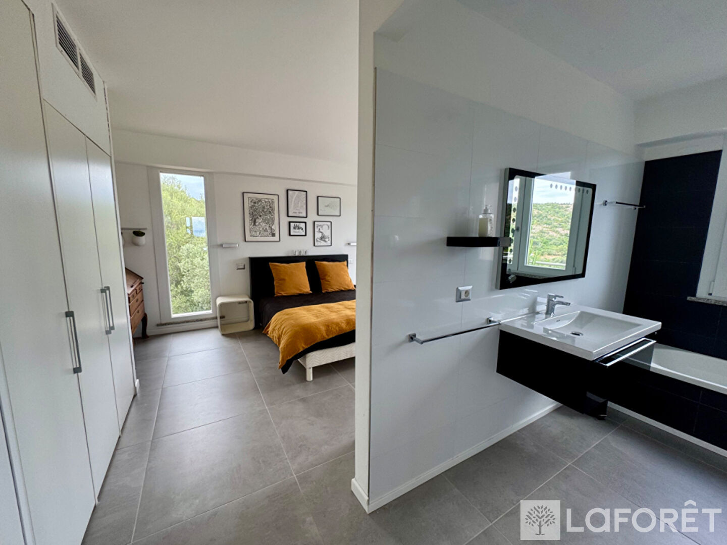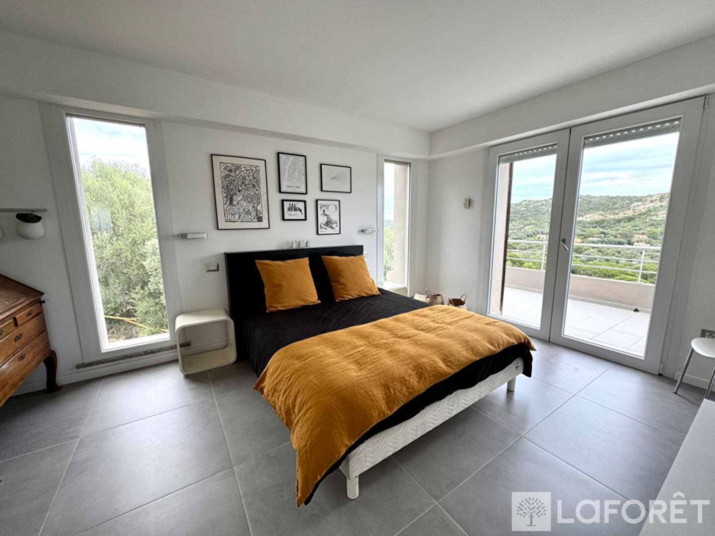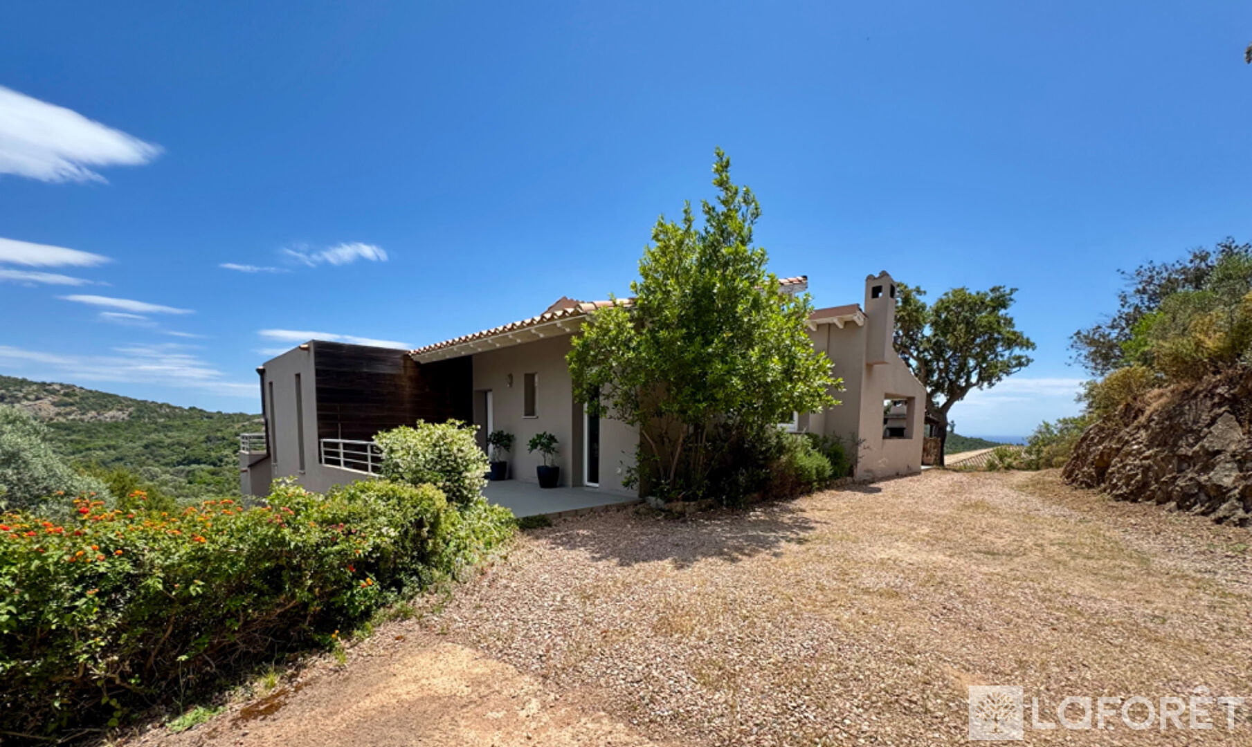 - Une suite parentale avec salle de bains privative, donnant sur un balcon avec vue sur le maquis.