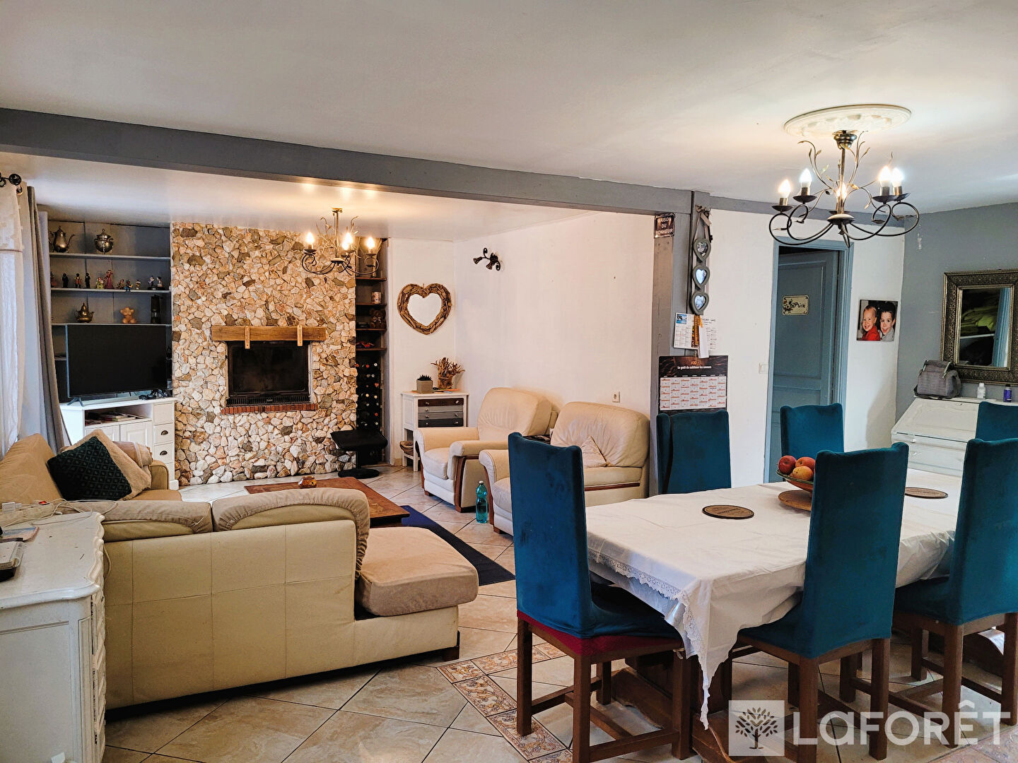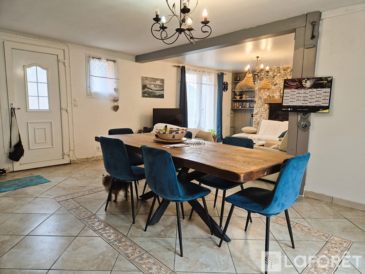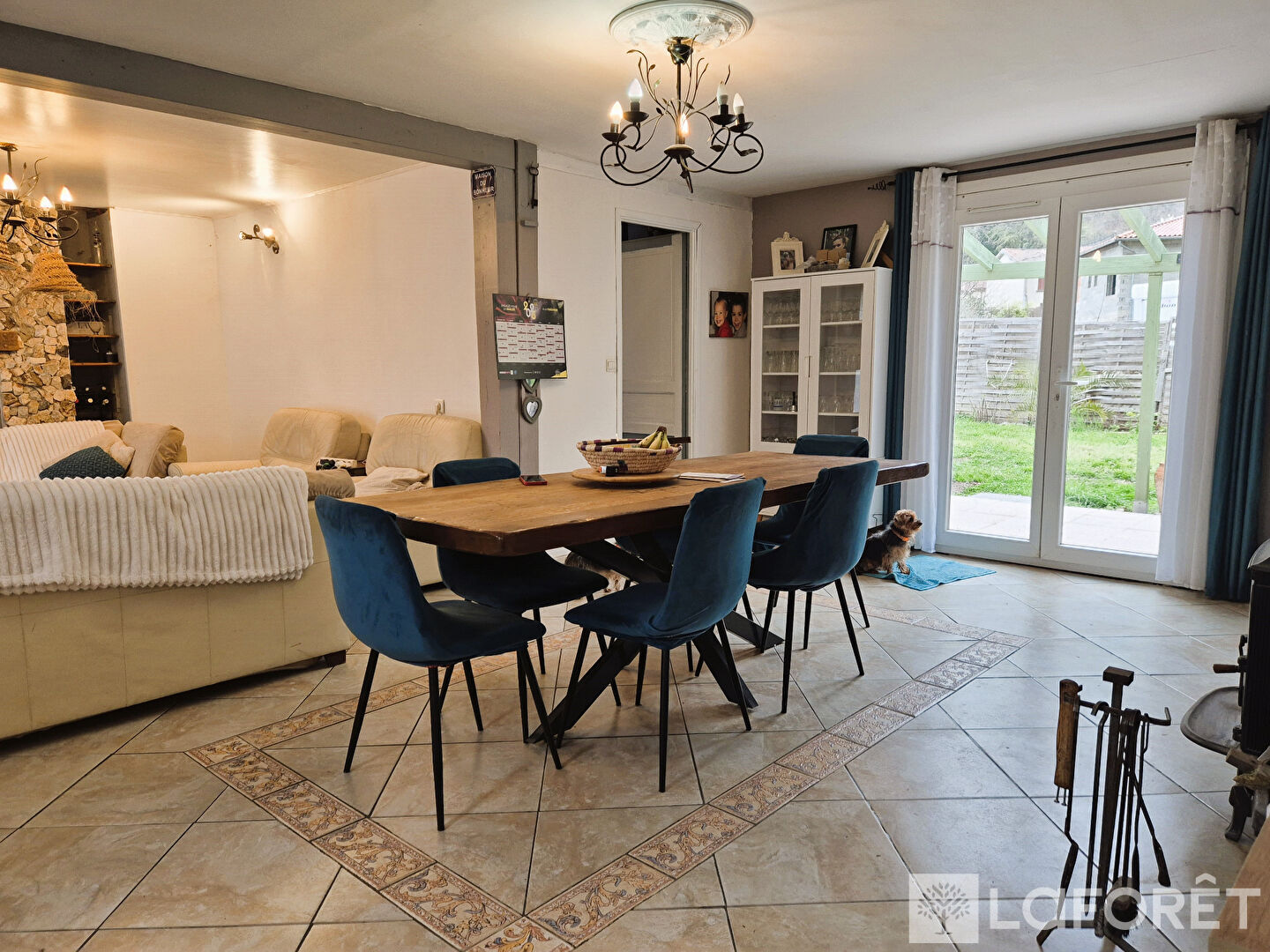 Elle s'ouvre sur une belle pièce de vie chaleureuse et lumineuse, idéale pour partager de bons moments en famille ou entre amis.