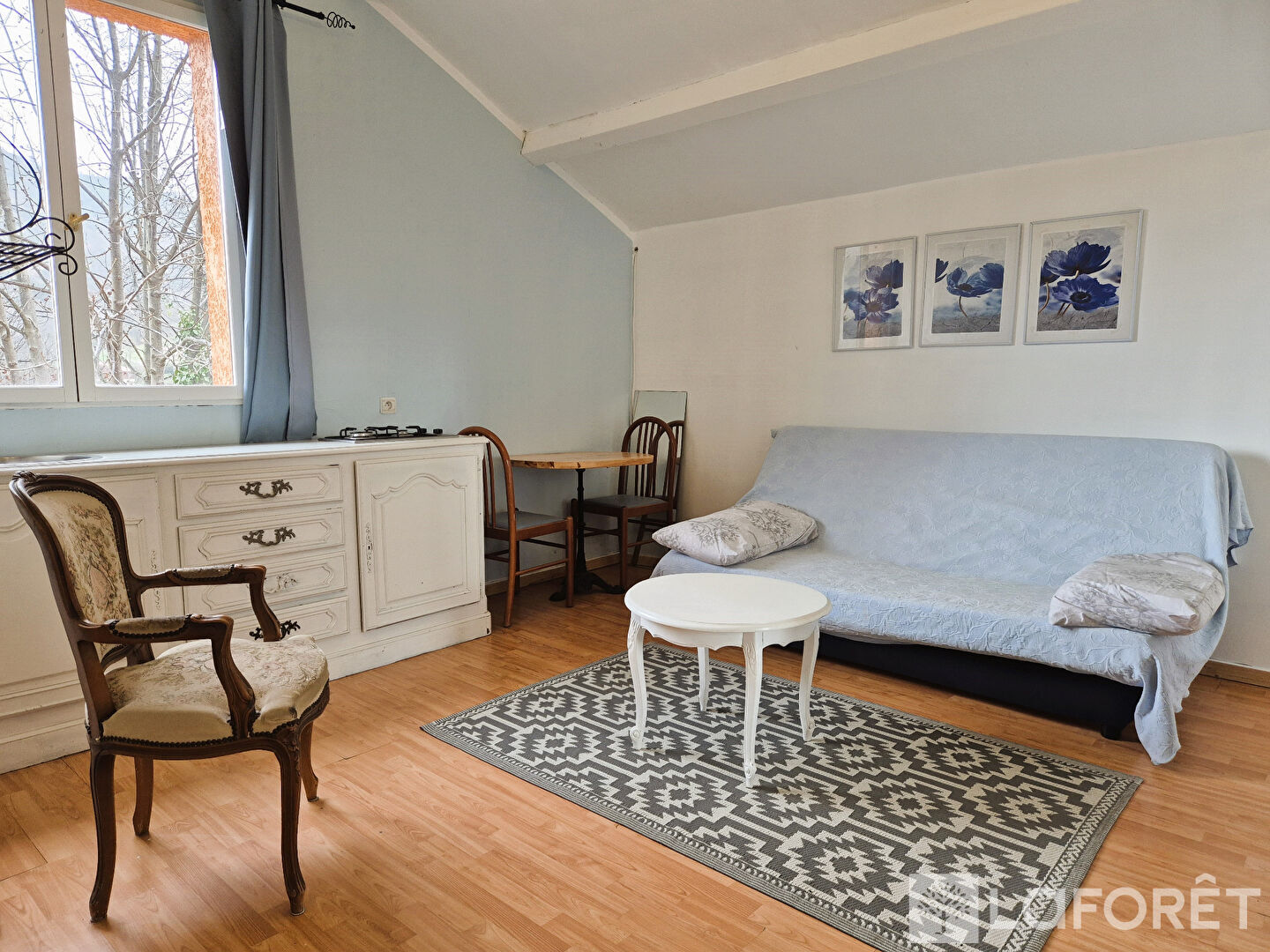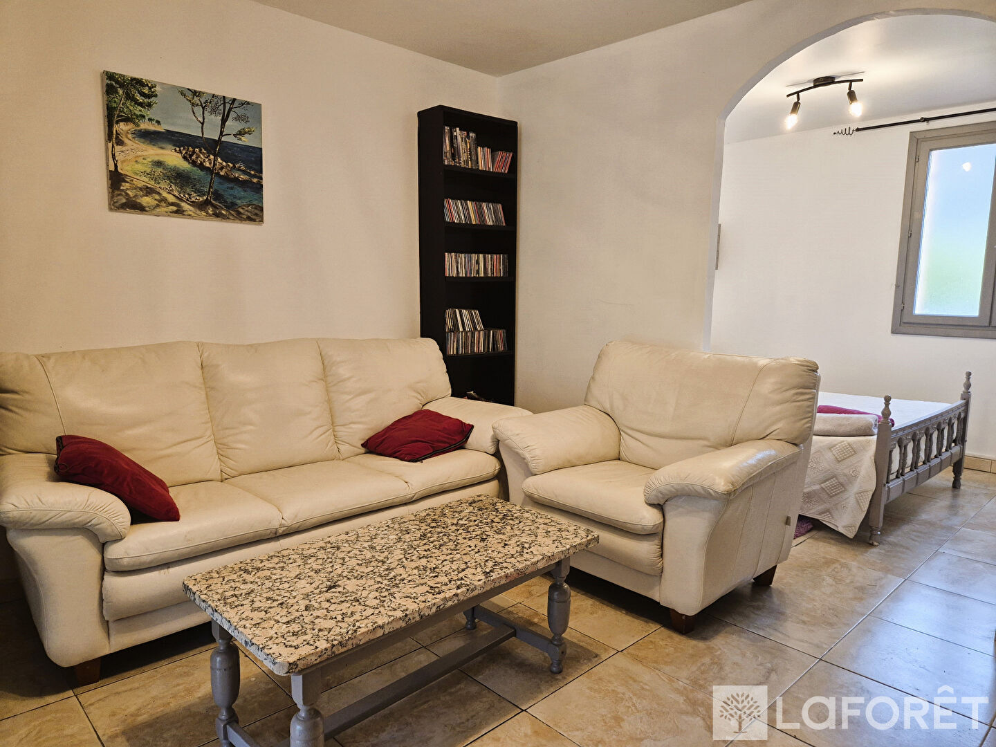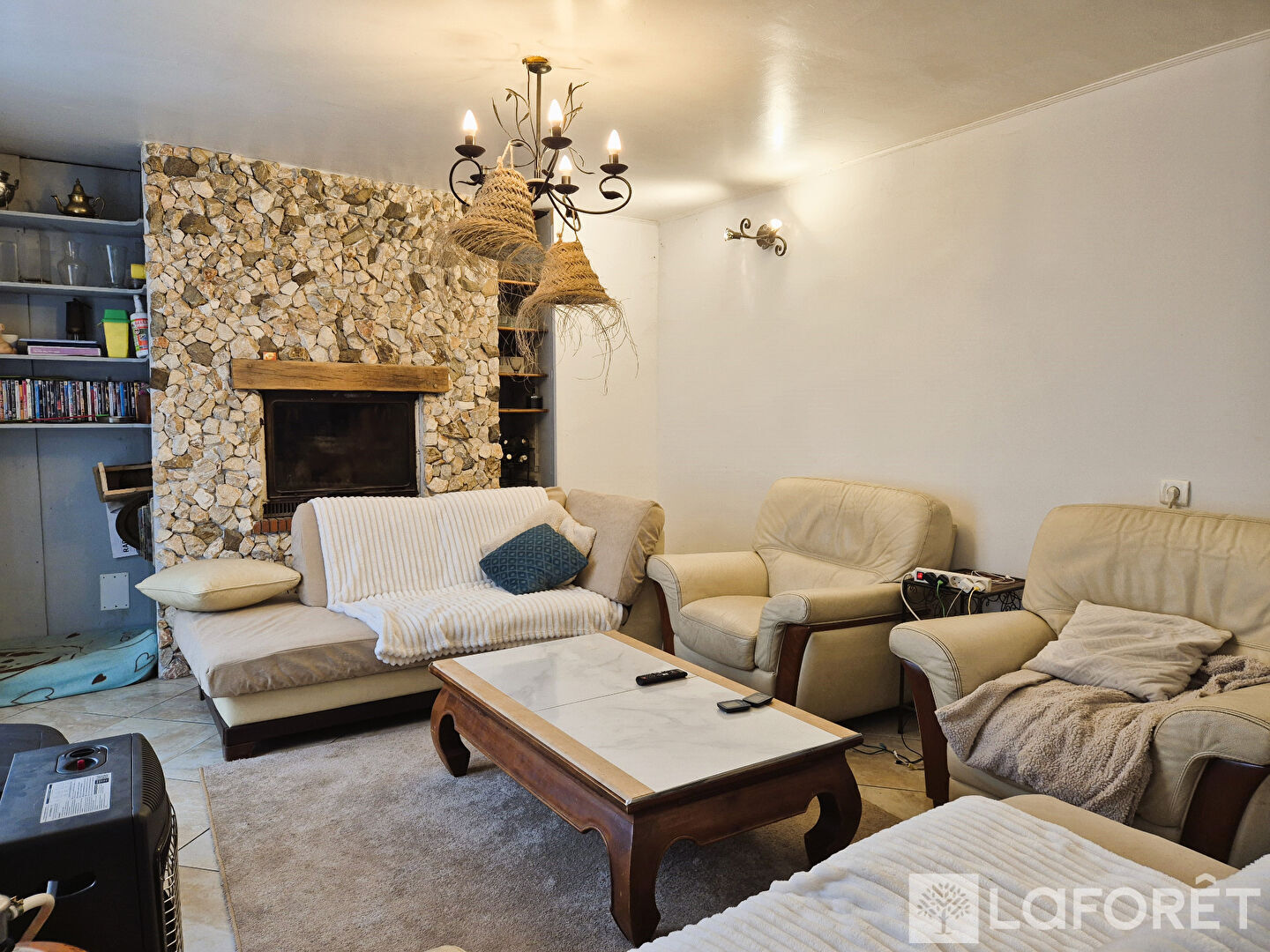 Elle s'ouvre sur une belle pièce de vie chaleureuse et lumineuse, idéale pour partager de bons moments en famille ou entre amis.