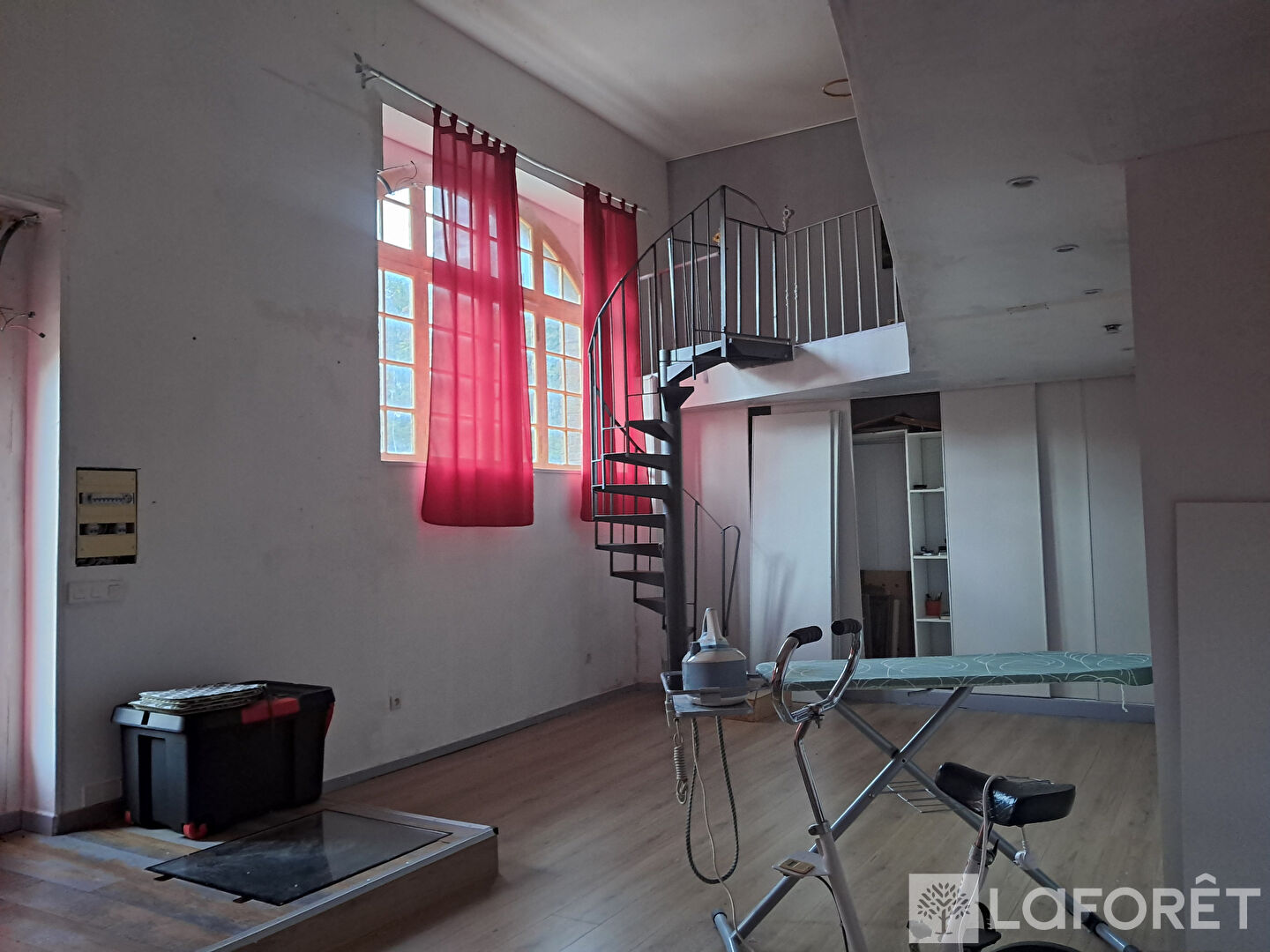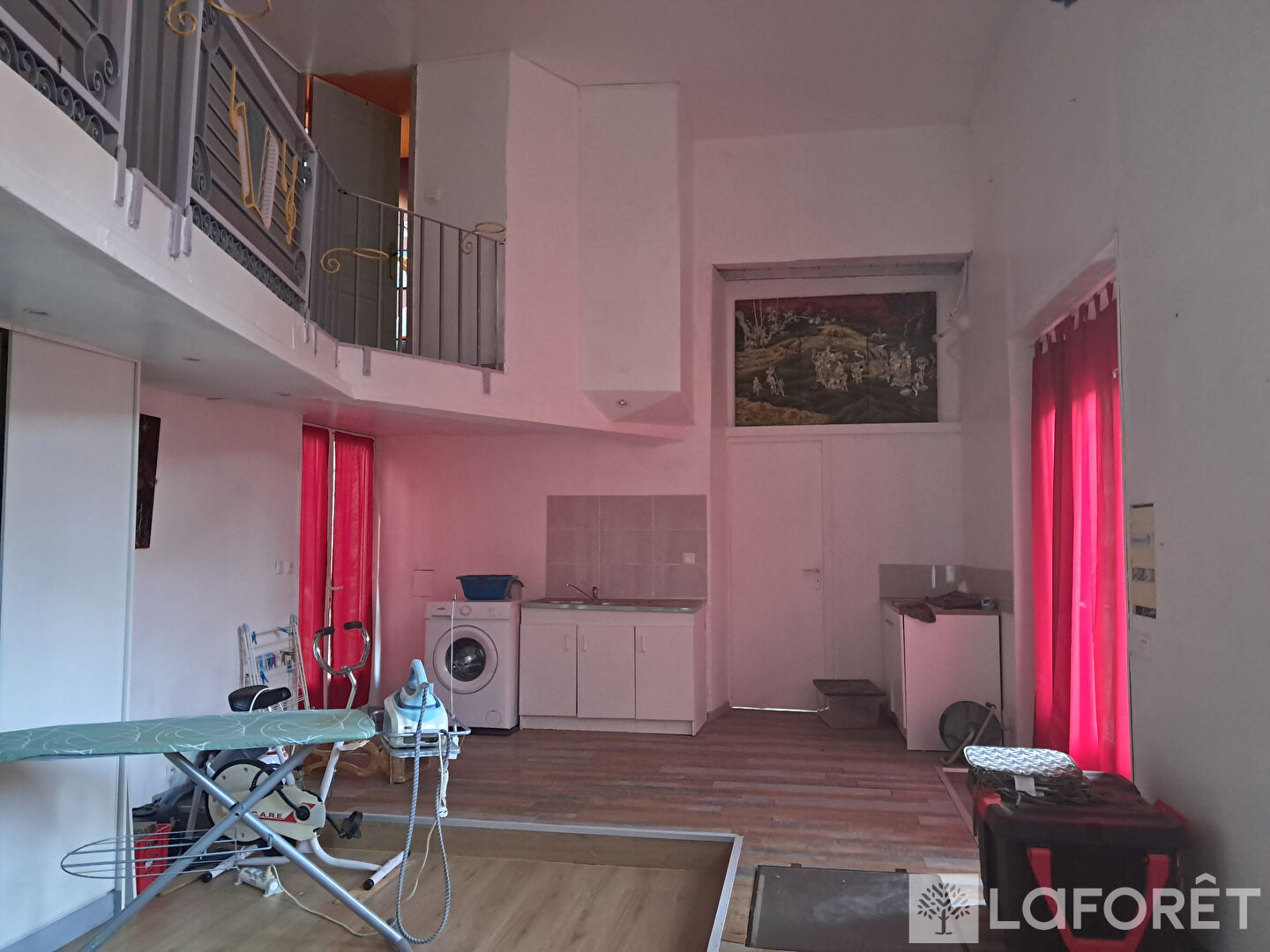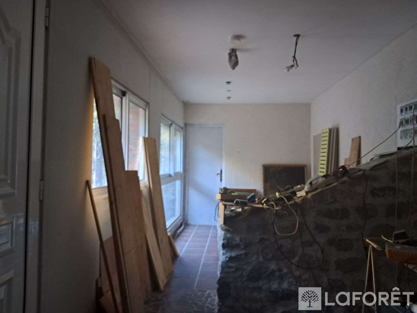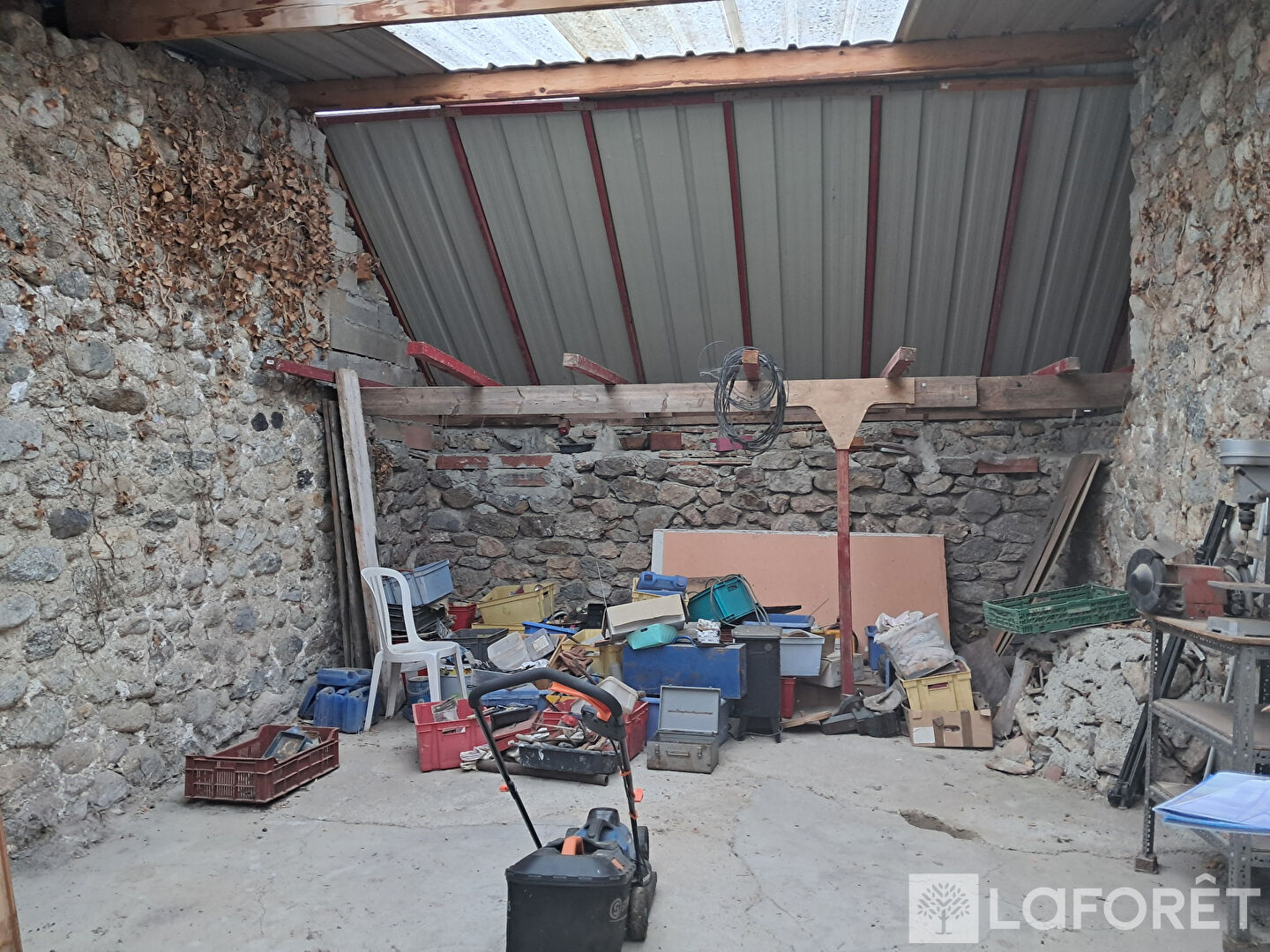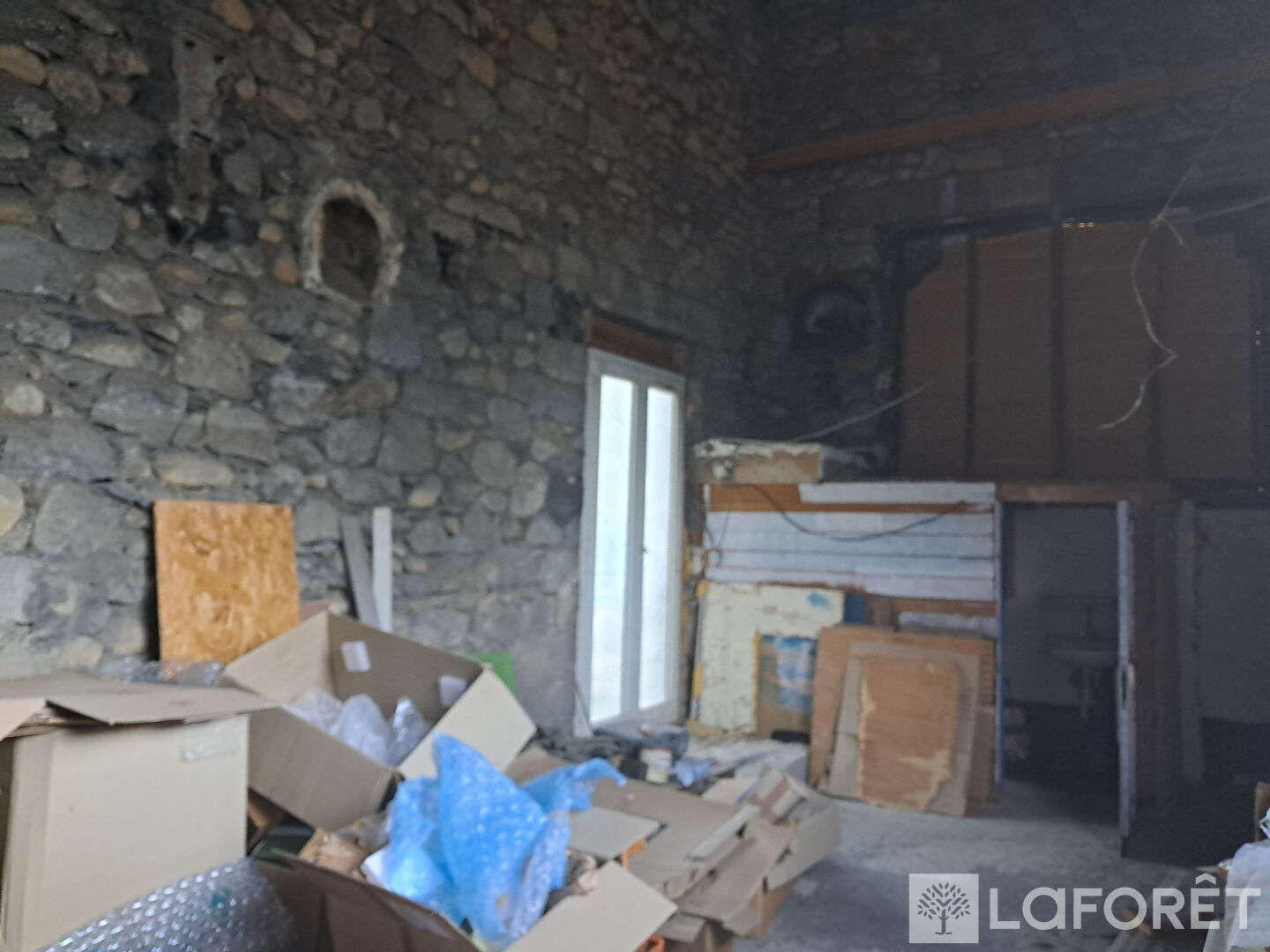 Prévu pour accueillir un studio avec mezzanine, salle de bain, et un atelier restant à aménager. Travaux déjà bien avancés.