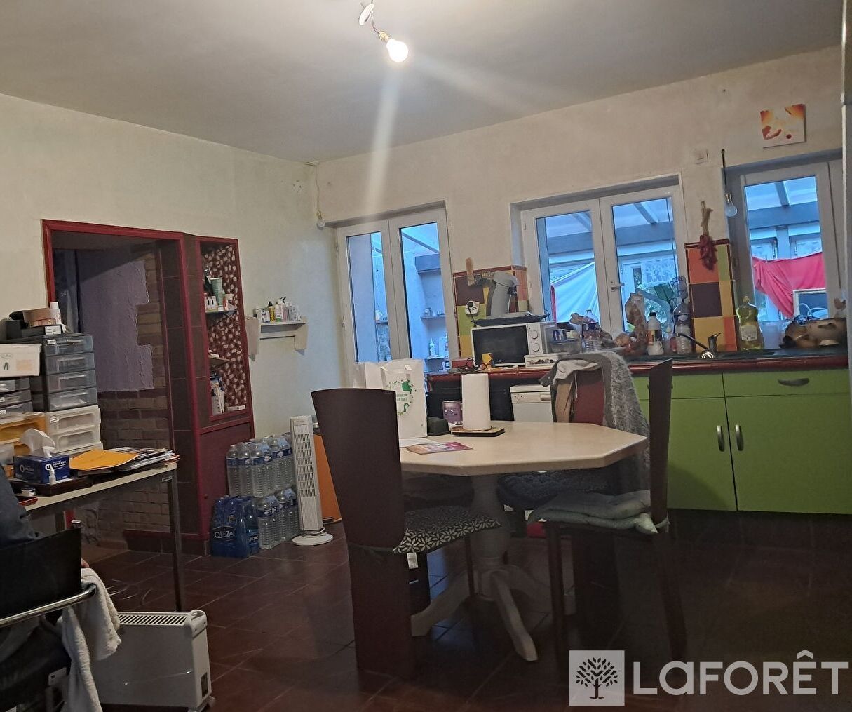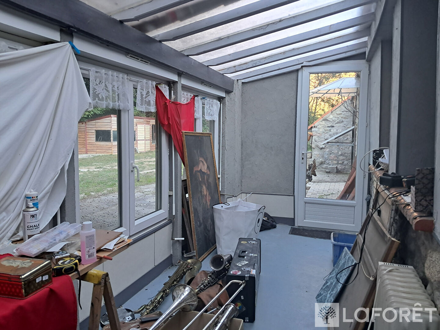 Une maison habitable de suite comprenant une cuisine, un salon, une chambre, une salle d'eau, ainsi qu'un atelier attenant.