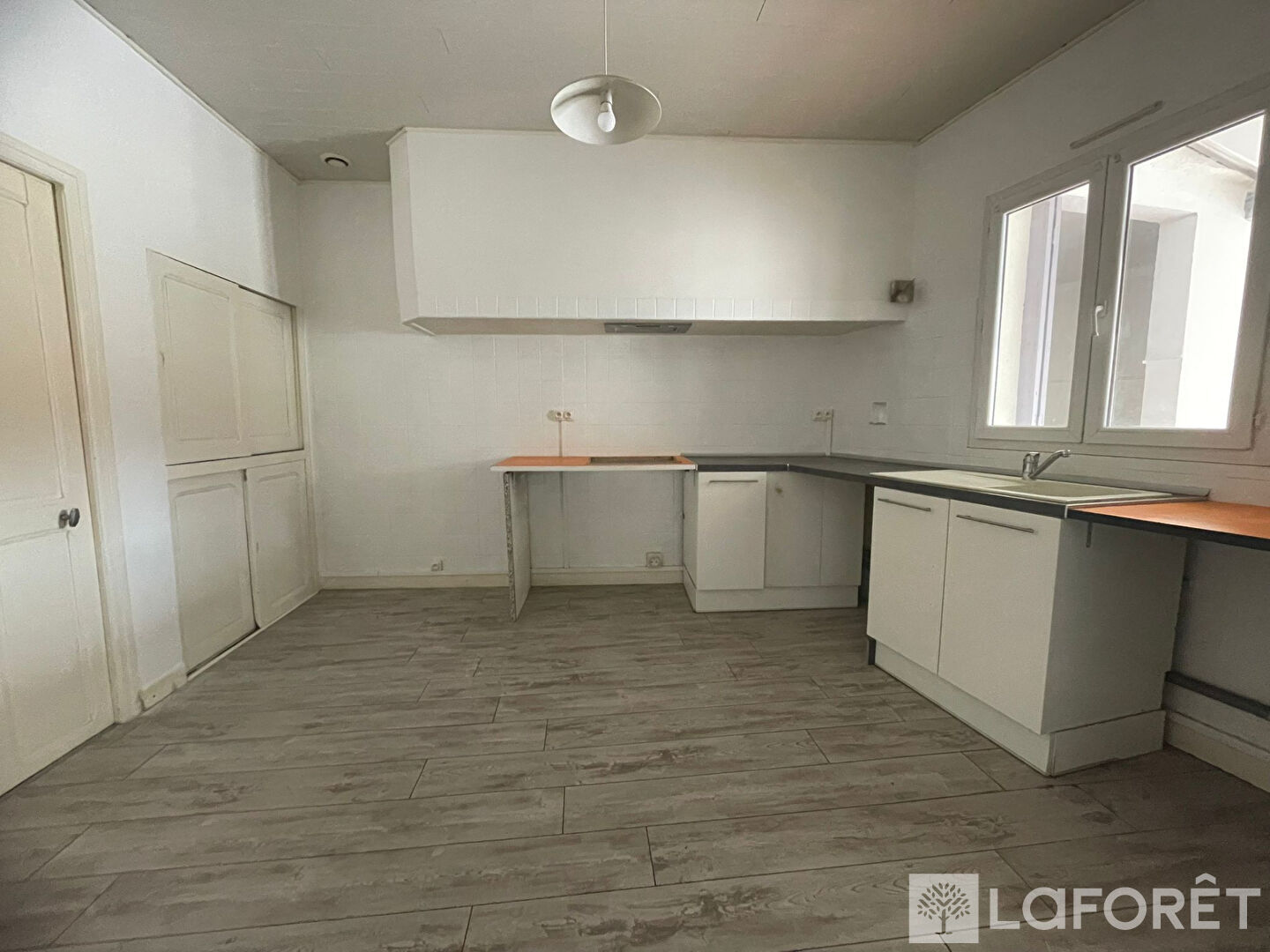 Le salon et la cuisine seront repeints en blanc, offrant un intérieur lumineux et soigné.