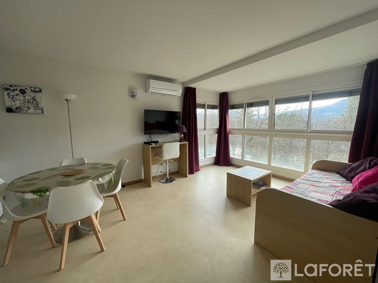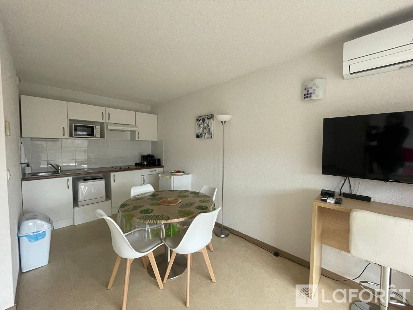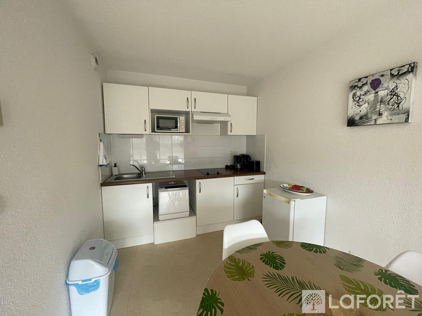 L'appartement se compose d'un séjour lumineux avec une cuisine ouverte, aménagée et équipée, créant un espace de vie convivial et bien agencé. La pièce principale est également aménagée avec un canapé convertible offrant deux couchages, idéal pour optimiser l'espace.