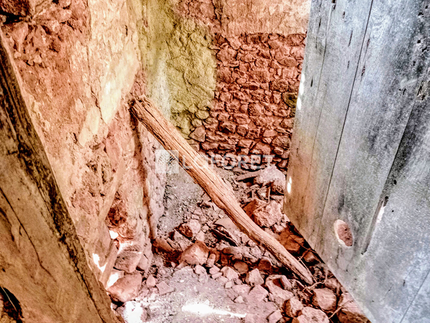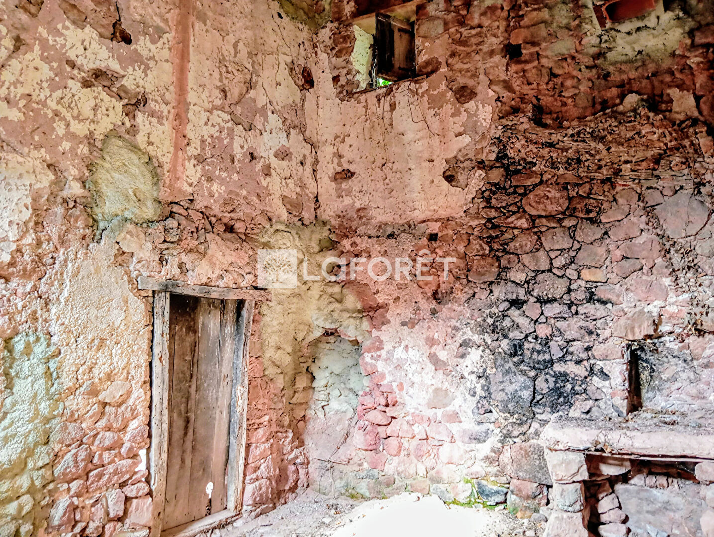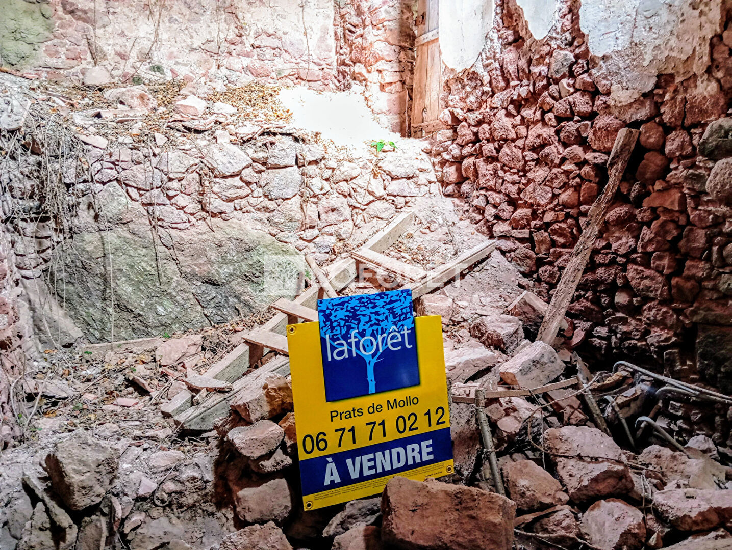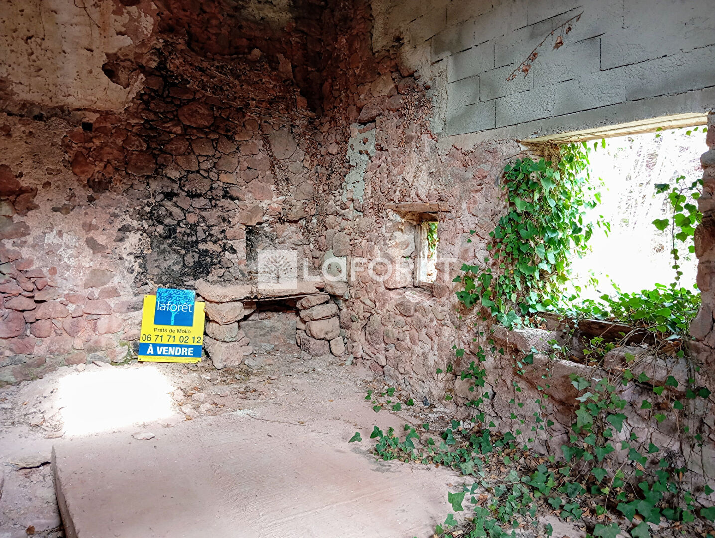Murs et sol en pierre, Aucune menuiserie, Toiture récente. Accès à pieds rapides.