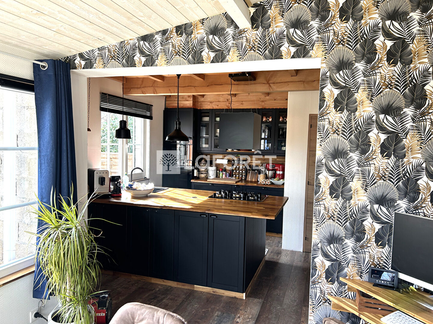 La cuisine aménagée et équipée donne sur une deuxième salle à manger, parfaite pour recevoir.