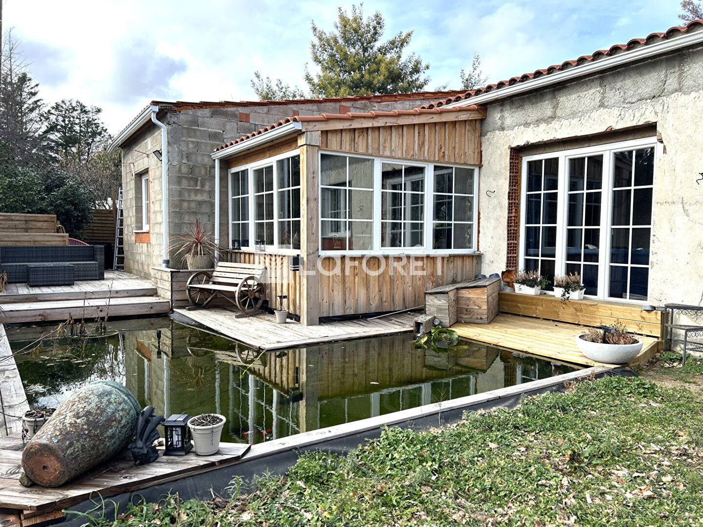 Il donne accès aussi, à l'avant de la maison à un joli bassin, également relié à cette eau naturelle, souligne le côté zen de la maison.