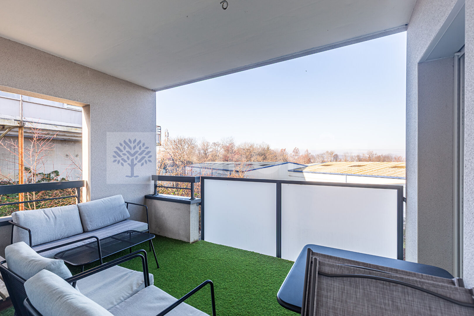 Dès l'entrée, un couloir avec placards mène vers une salle de bain avec WC. Vous trouverez également un salon ouvert sur une cuisine aménagée et équipée, donnant accès à un joli balcon aménagé avec vue dégagée. La chambre, munie d'un placard bénéficie elle aussi d'un accès direct au balcon.