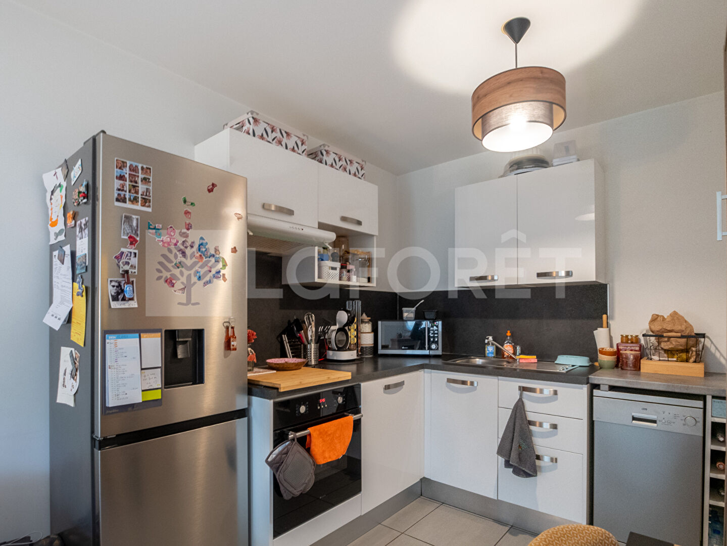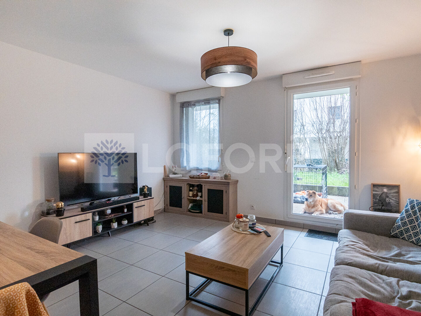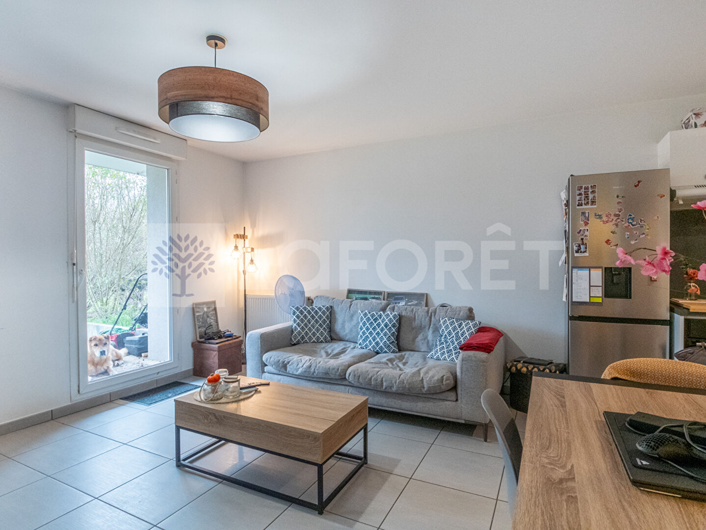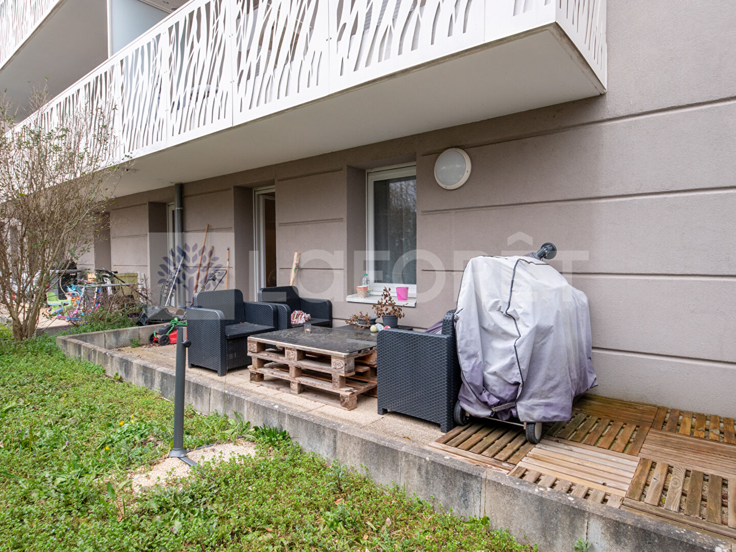 Annecy, secteur Seynod Centre, proche de toutes les commodités, à louer un appartement de type 2 NON MEUBLE de 47,25 m² en rez de jardin comprenant : Une entrée avec rangements, un séjour avec cuisine semi équipée (four, plaque de cuisson, hotte) équipée donnant sur une terrasse et un jardin privatif, une chambre, une salle bains avec WC séparés.