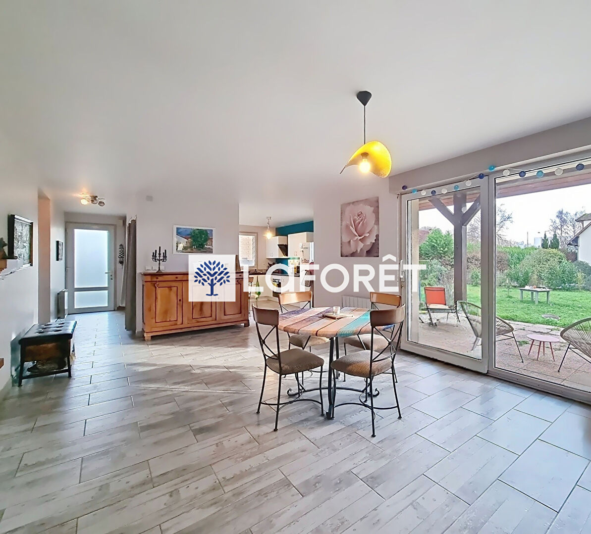 Le coeur de la maison révèle ensuite son véritable atout avec une vaste pièce de vie baignée de lumière naturelle grâce à sa grande baie vitrée donnant sur la terrasse semi-couverte. L'espace se compose d'un salon convivial avec cheminée à foyer ouvert et d'une cuisine ouverte aux finitions contemporaines, parfaite pour recevoir famille et amis.