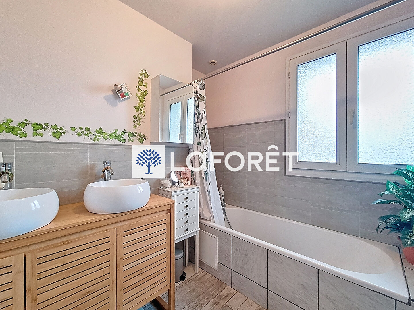 Au rez-de-chaussée vous serez séduit par une belle entrée fonctionnelle avec rangements qui dessert intelligemment une première chambre, une élégante salle de bains équipée de deux vasques, un WC séparé et une buanderie pratique.