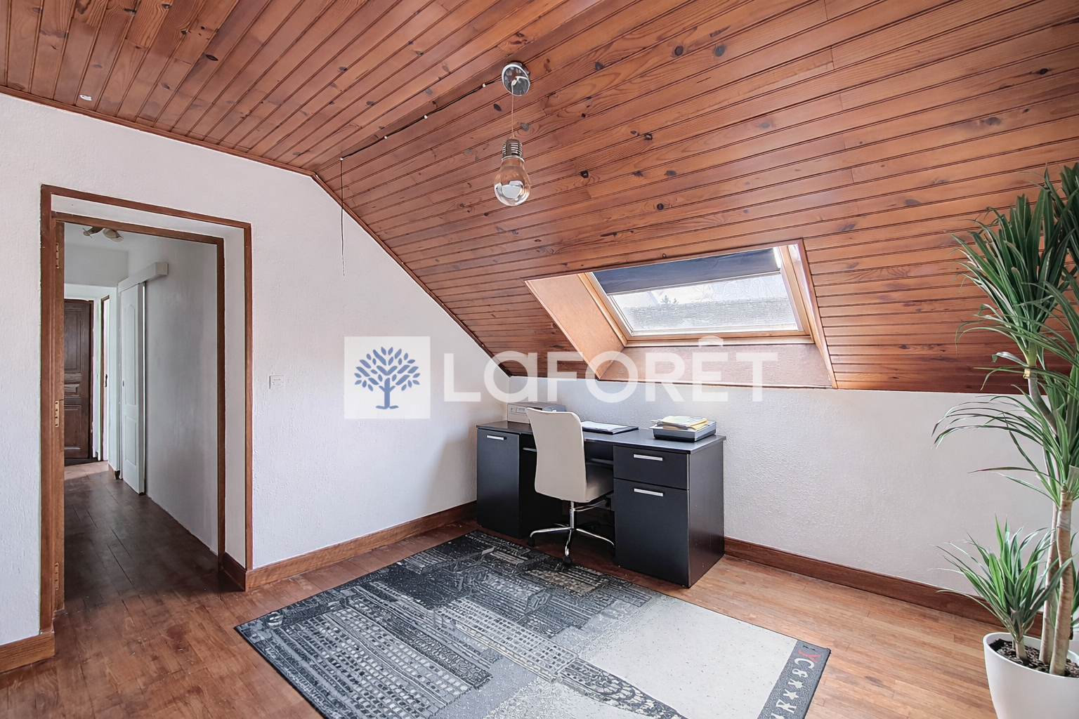 À l'étage, une mezzanine lumineuse offre un espace bureau idéal pour le télétravail ou un coin lecture, tandis qu'un couloir dessert deux belles chambres, une troisième chambre parfaite pour un enfant, ainsi qu'une salle de bains avec baignoire et WC.