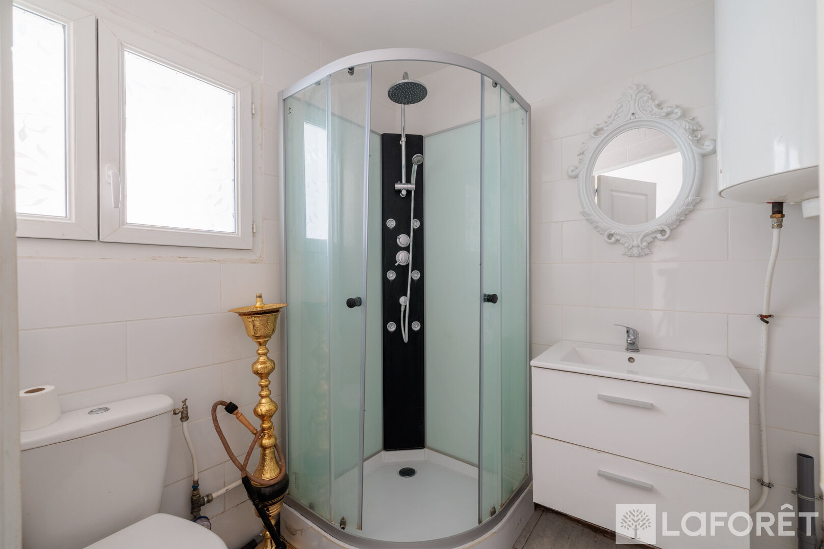 Vous y découvrirez également un troisième appartement indépendant de type F2 en duplex de 30,53m2, comprenant : une entrée, un salon/séjour avec cuisine américaine, une salle d'eau avec wc et une chambre.