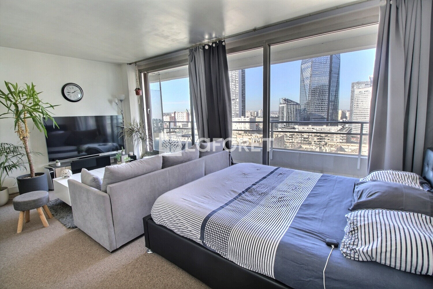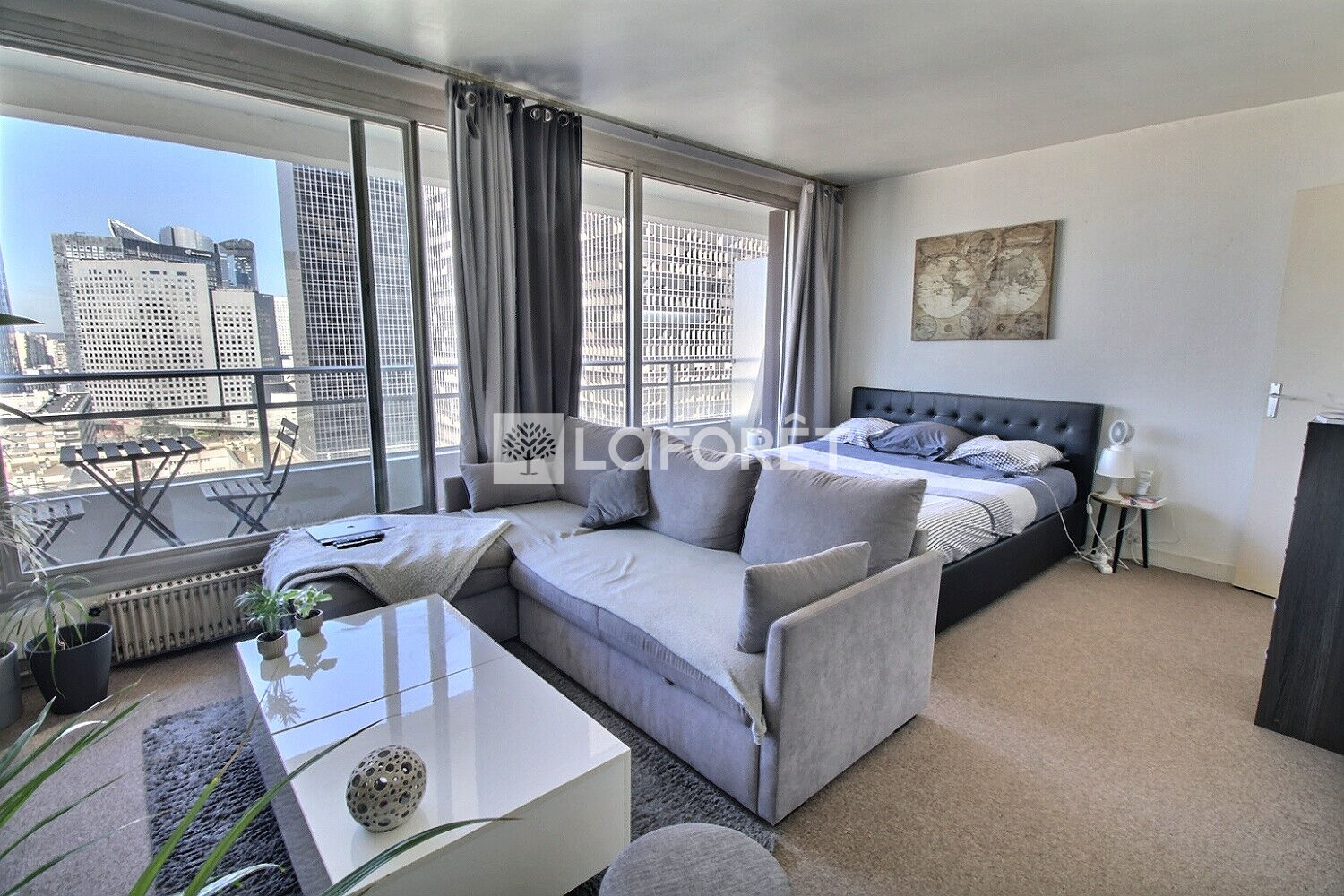 La taille du salon de 22.74m2, associé à la luminosité du 26ème étage sur 30 et de sa vue dégagée offre un espace de réception qui sans nul doute saura vous séduire ainsi que sa cuisine séparée et sa salle de bains fonctionnelle.