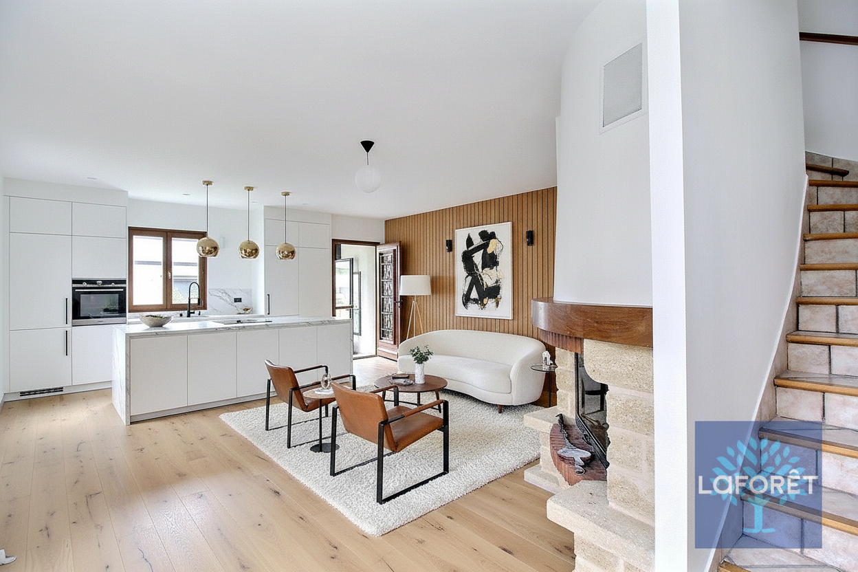 PUTEAUX QUARTIER PASTEUR . Coup de coeur assuré pour cette maison familiale de 120m² habitables. A proximité de la gare de Puteaux, écoles, commerces. Cette demeure bénéficie d'un espace extérieur arboré. Le RDC comprend une entrée / véranda, un séjour avec cheminée et une cuisine ouverte, des WC séparés. L'escalier dessert au 1er étage : 2 chambres, une salle de bains/WC. Au 2ème étage : chambre parentale de 23.85m² et sa pièces d'eau/WC. Au sous-sol : WC et lave-main ainsi que 3 pièces aménagées. Succombez à cette maison de ville !