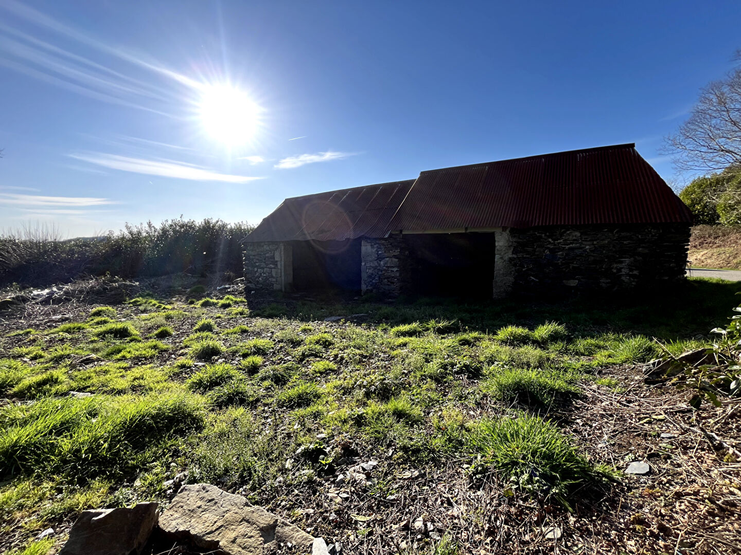 Terrain sans eau ni électricité le réseau d'eau passe le long de l'ancienne maison d'habitation à rénover entièrement.