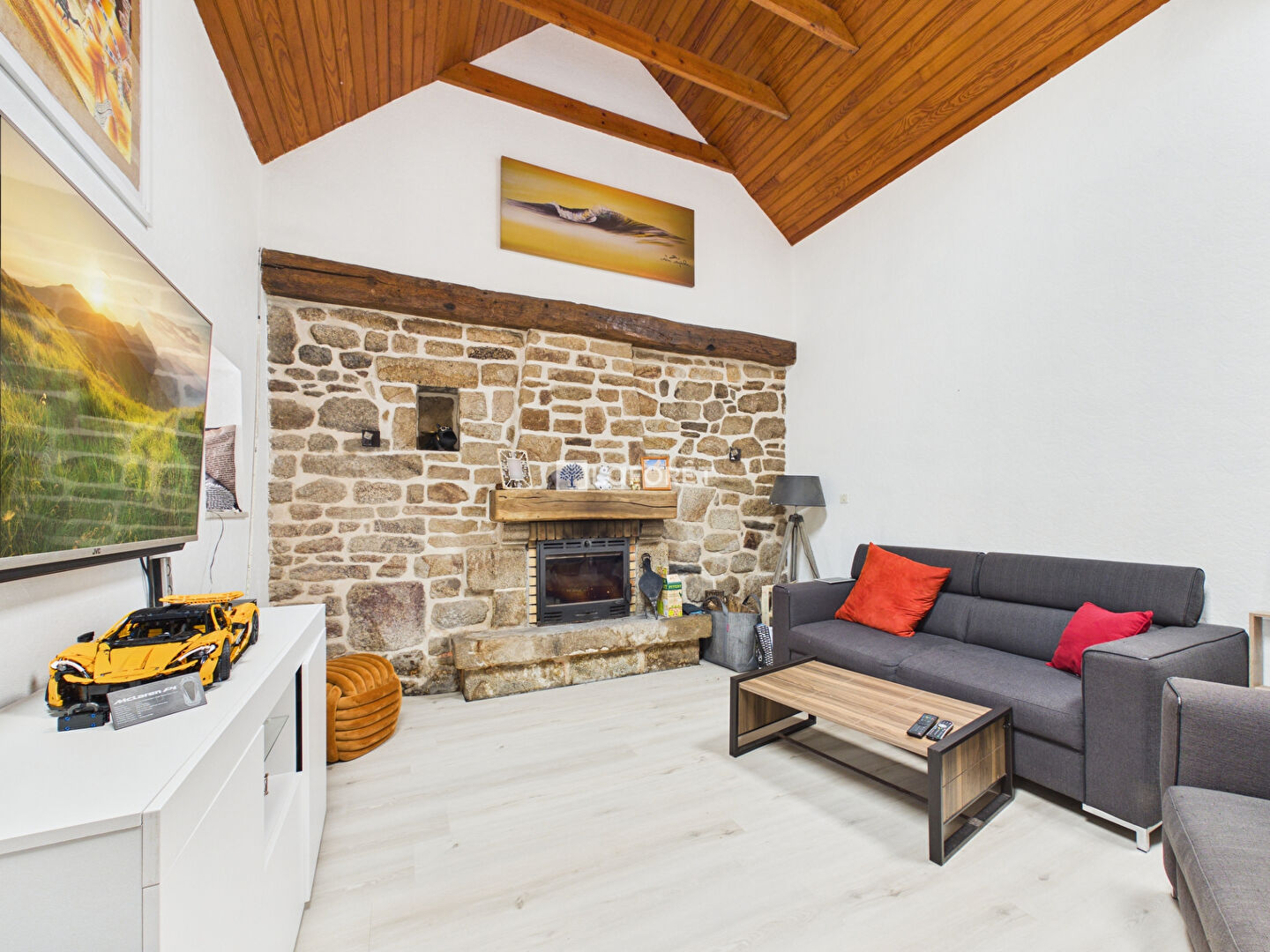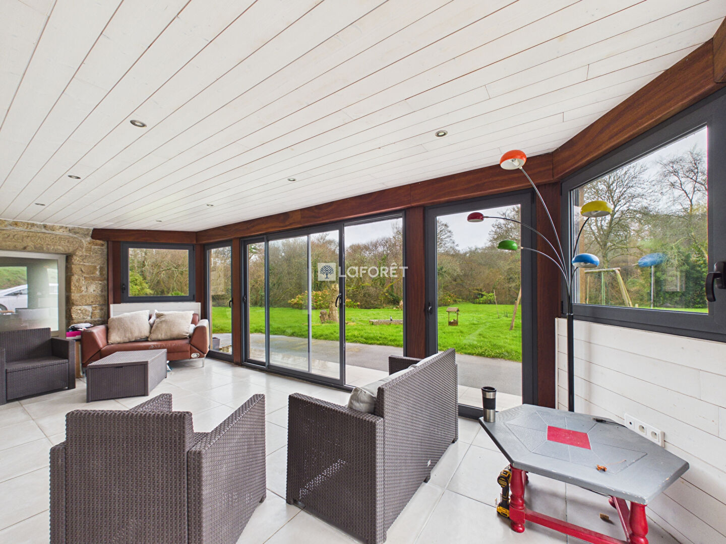 La maison, d'environ 158 m² habitables, comprend en rez-de-chaussée une belle pièce de vie de 42 m² avec cuisine ouverte aménagée équipée, grande mezzanine ( 5ème chambre possible) une entrée dessert un WC, une salle de bain et une chambre de plain-pied. Une véranda chauffée de 21 m² ouverte sur la nature. Une buanderie de 32m2 lumineuse offre de multiples possibilités d'aménagement.