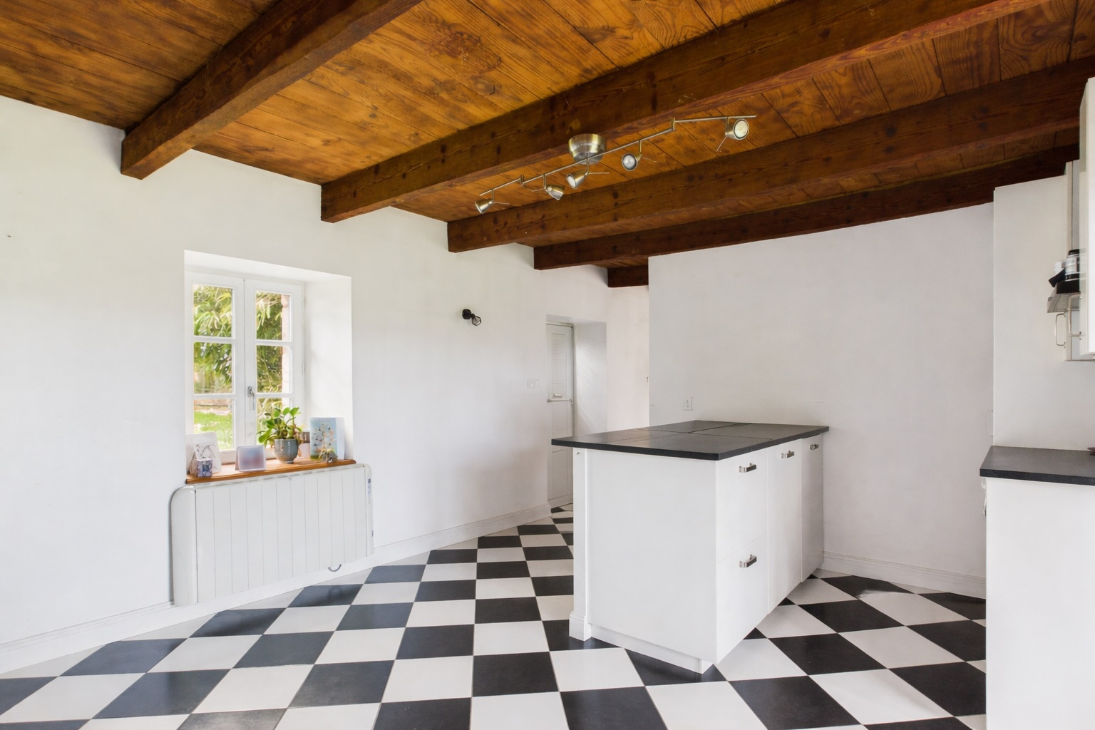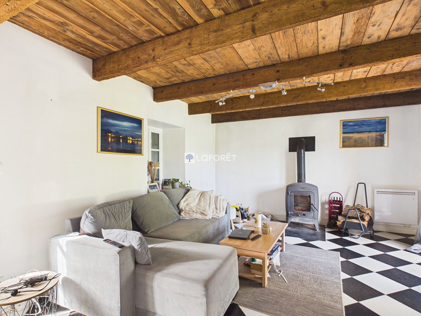 Elle est composée d'une cuisine aménagée et équipée, d'un agréable salon avec un poêle à bois, d'une salle d'eau, d'un wc et d'un couloir avec coin rangement.