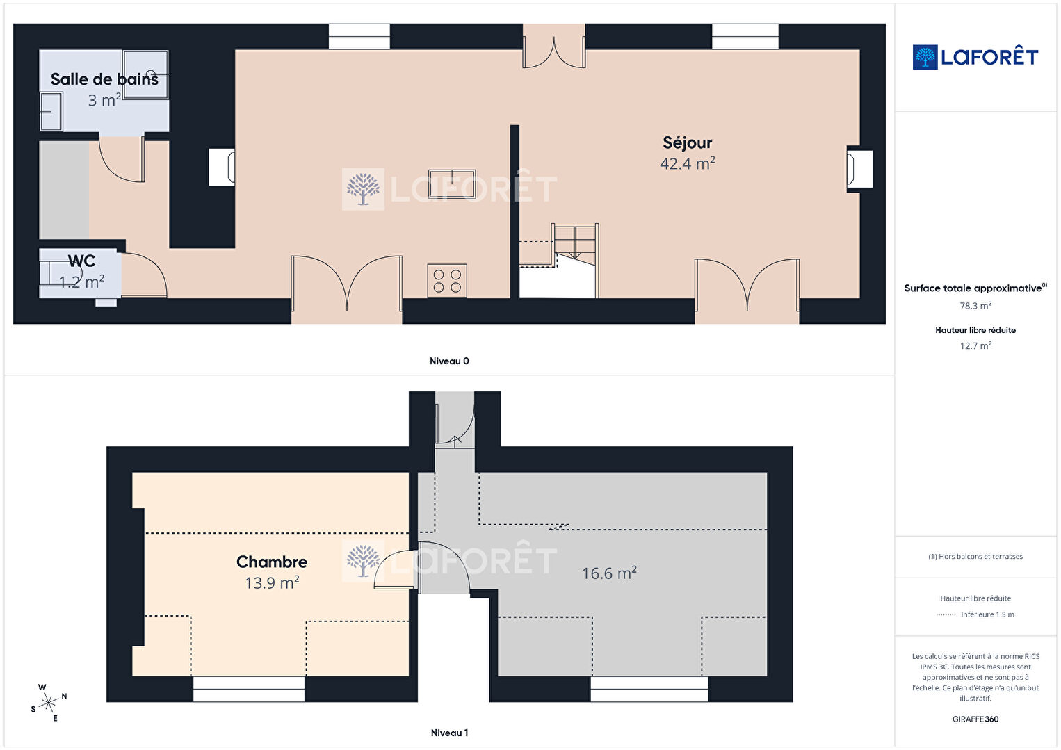 A l'étage vous disposez une chambre et d'un seconde chambre en mezzanine.