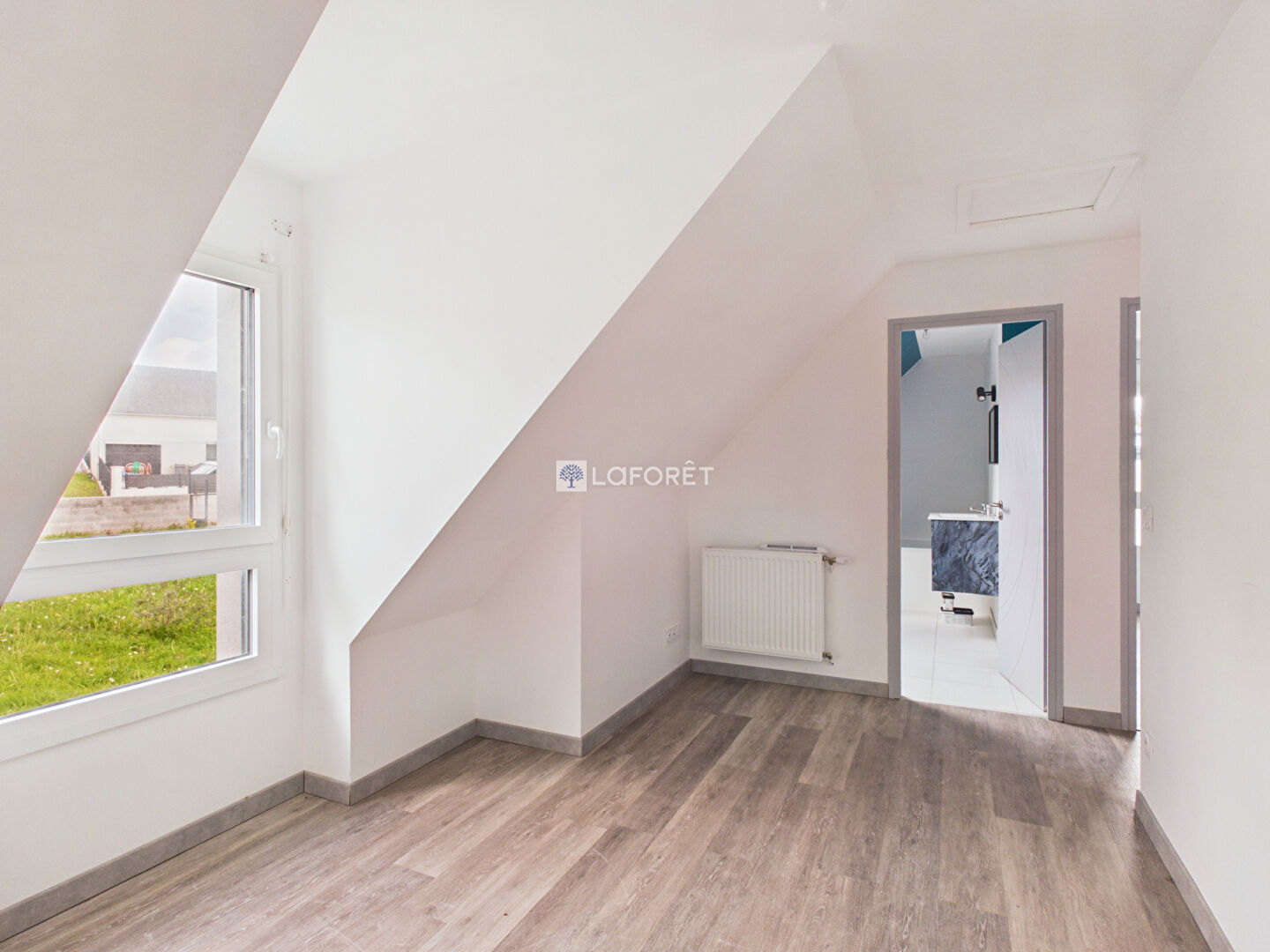 L'étage distribue 3 chambres, une salle de bains et un grand palier pouvant servir de bureau.