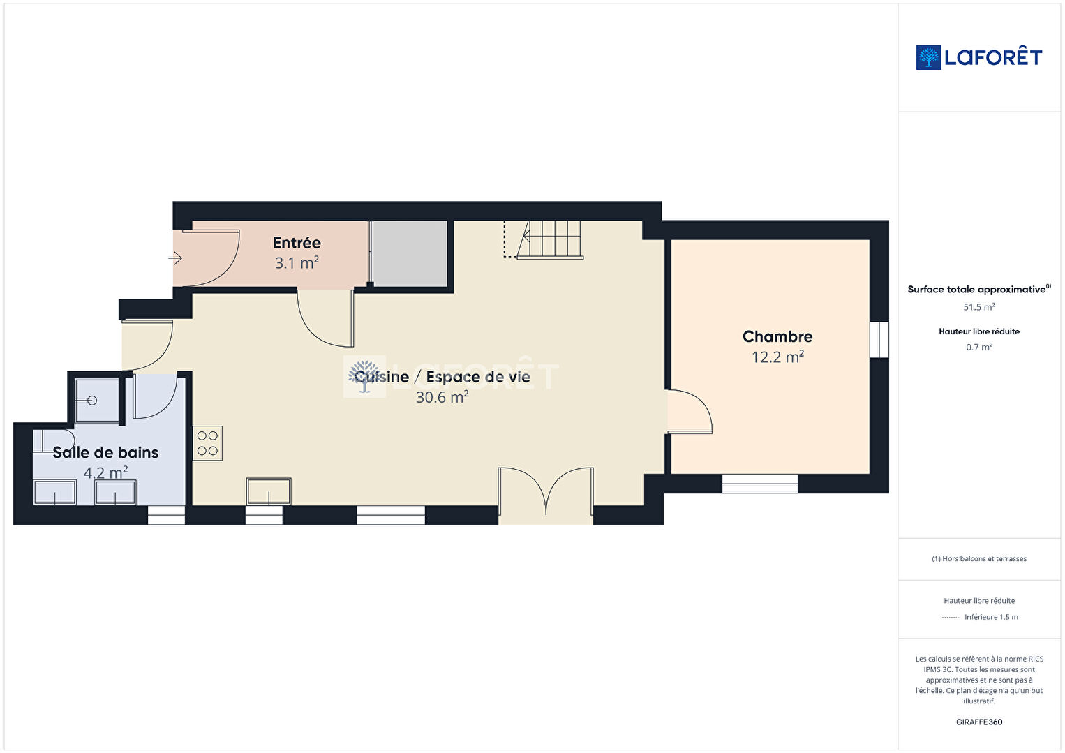 53 m² • 2 pièces • 1 chambre