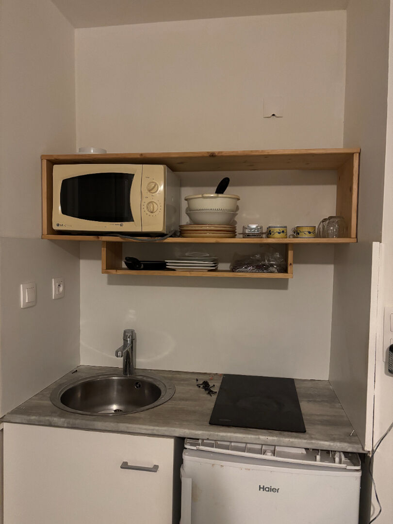 Situé en plein centre ville, vous disposez d'une pièce de vie avec un coin cuisine (plaque de cuisson, réfrigérateur) et d'une salle d'eau avec wc.