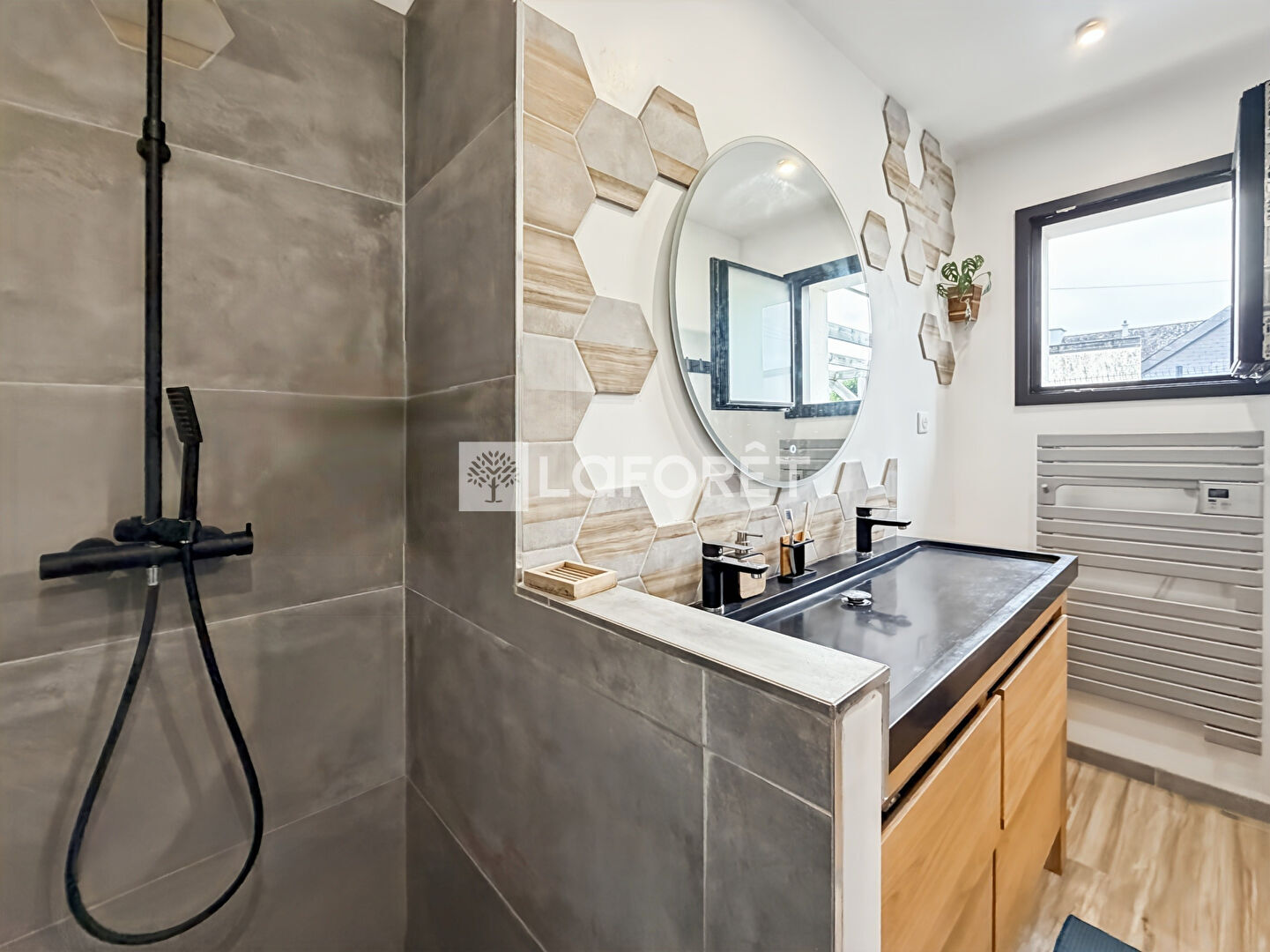 Au rez-de-chaussée, l'entrée s'ouvre sur une vaste pièce de vie lumineuse, dotée d'une cuisine ouverte aménagée et équipée. Un cellier attenant optimise le rangement. La suite parentale, également située de plain-pied, comprend une chambre avec baie vitrée, un dressing et une salle d'eau privative. Un WC indépendant complète ce niveau.