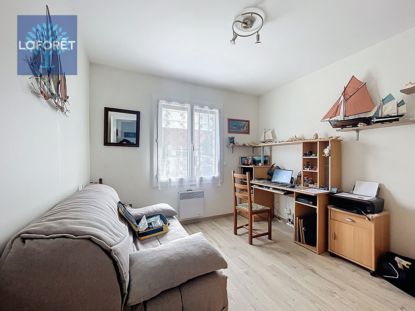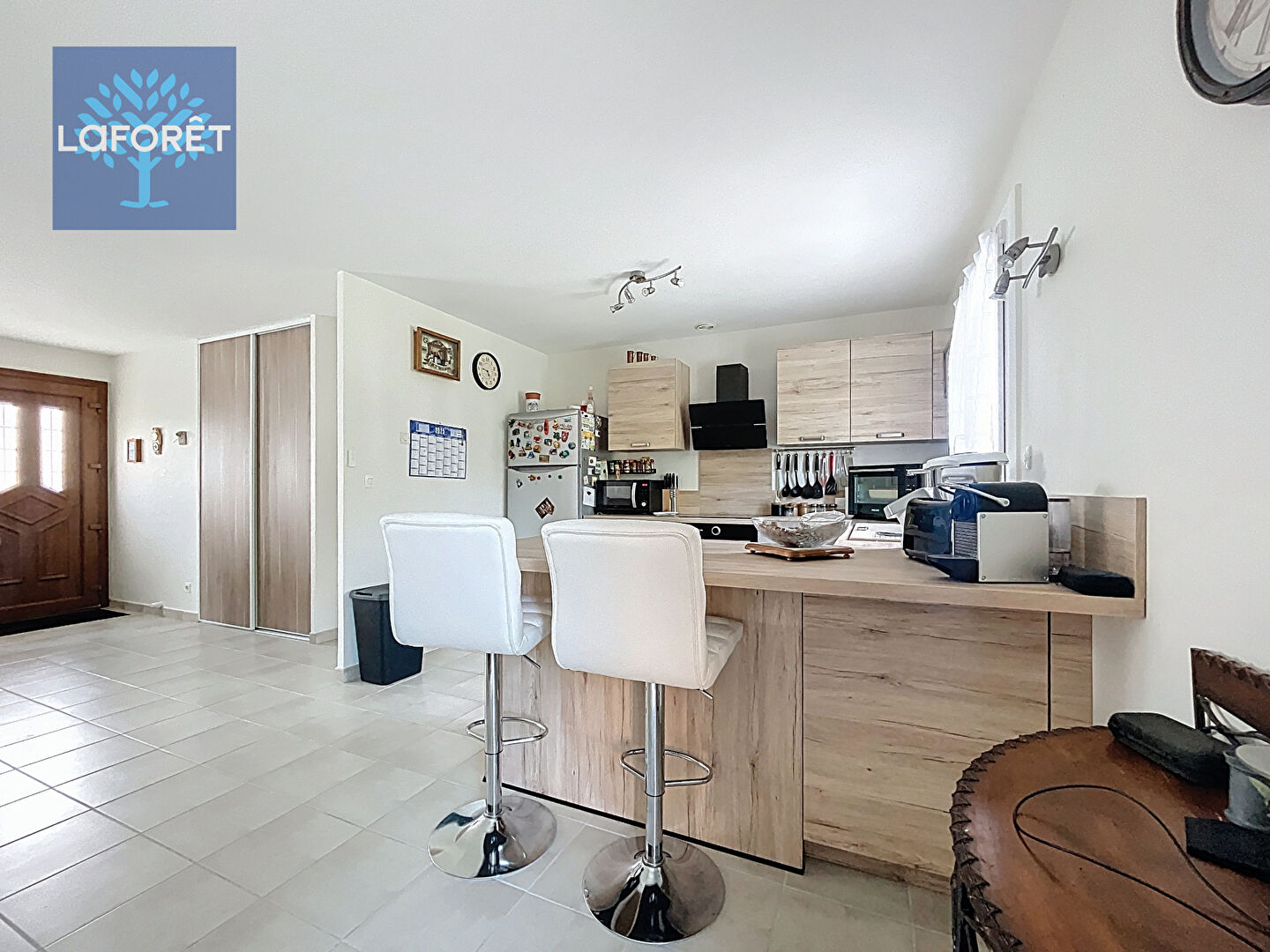 Vous entrez sur un double séjour, une cuisine ouverte, aménagée et équipée, trois chambres, une salle de bains et un wc.