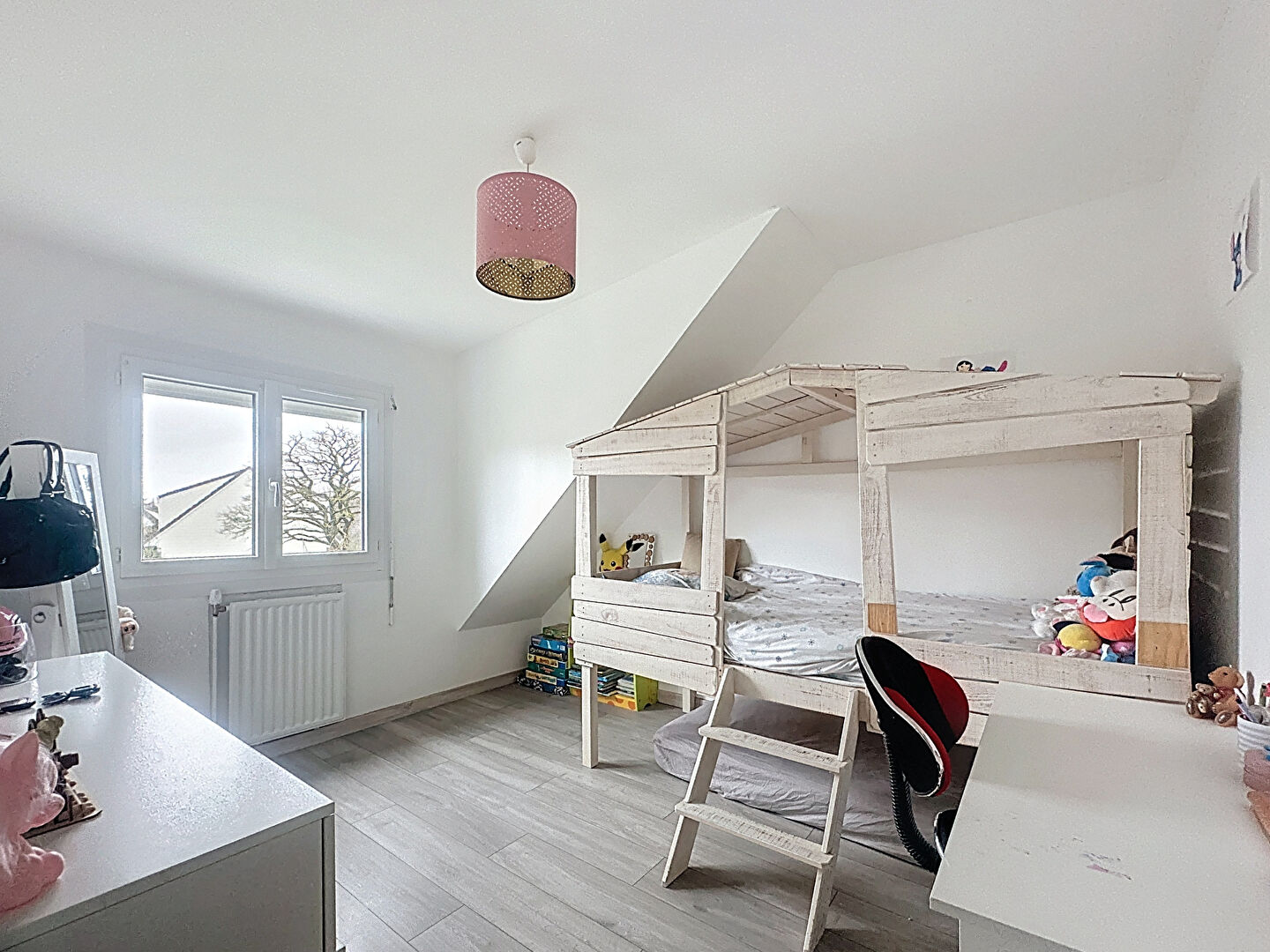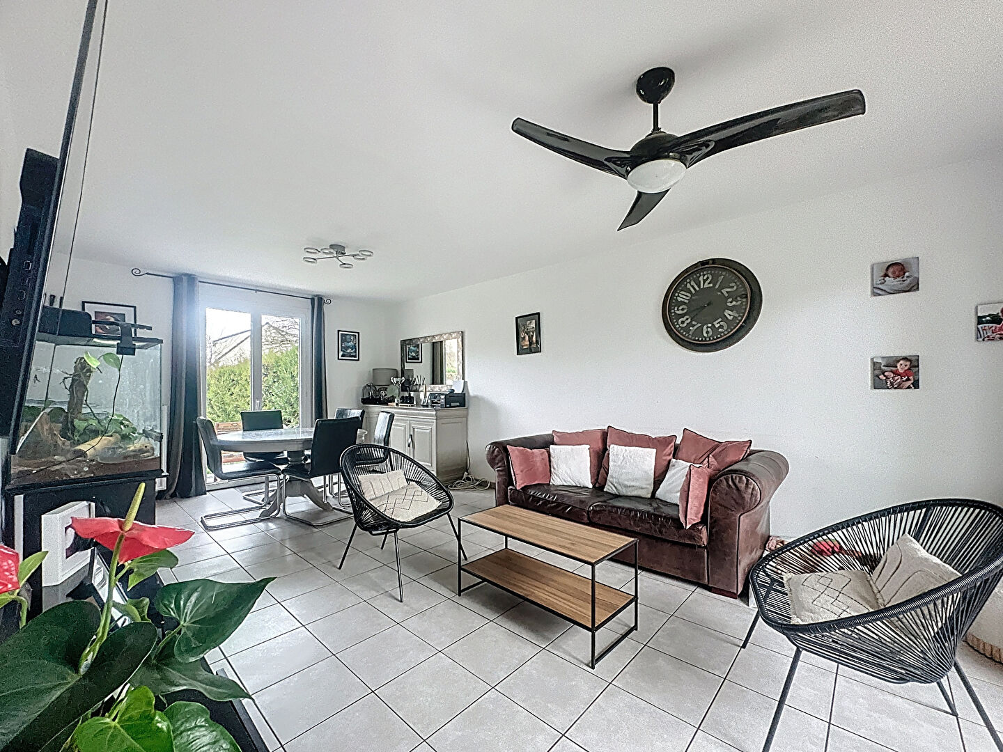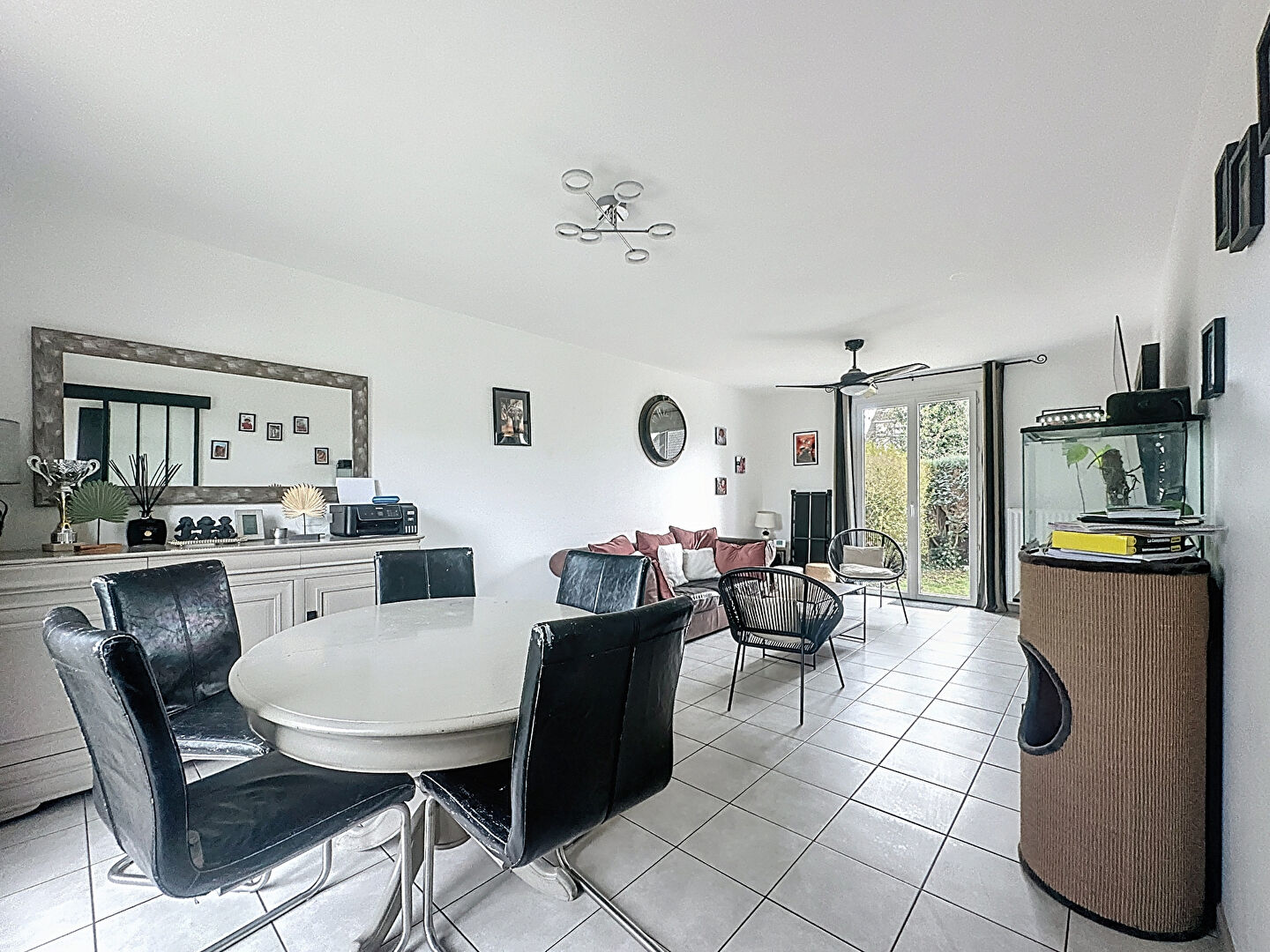 La maison se compose d'une entrée, d'un double séjour lumineux, d'une cuisine récente, de trois chambres à l'étage, et d'un agencement pratique offrant un confort de vie au quotidien.