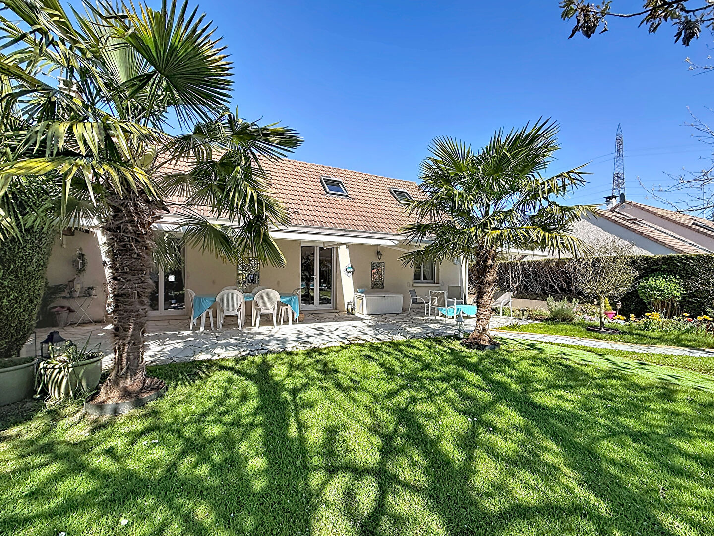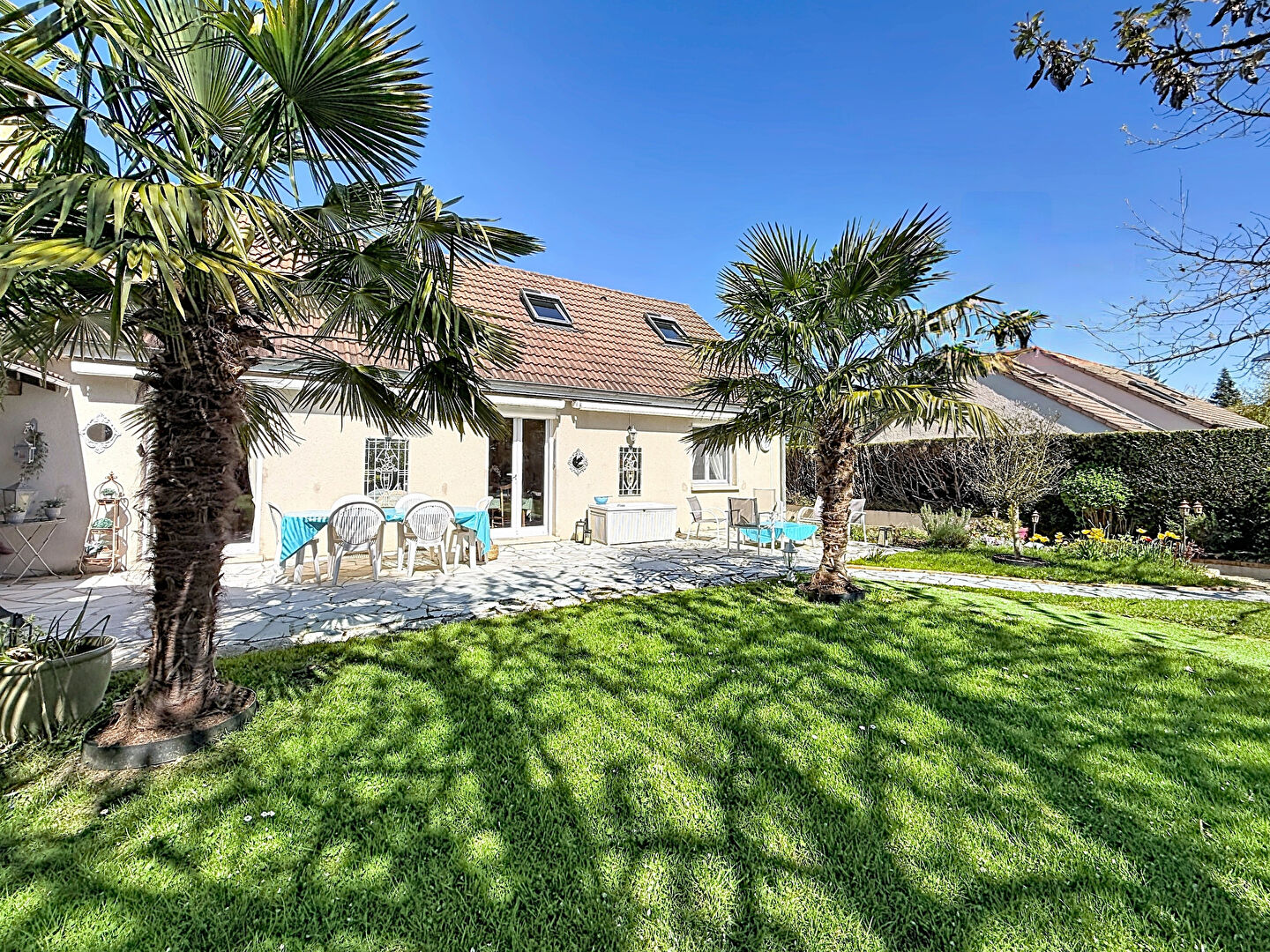 Posée sur un terrain joliment arboré de 1 200 m², cette maison d'environ 150 m² habitables sur deux niveaux bénéficie d'une organisation particulièrement réfléchie.