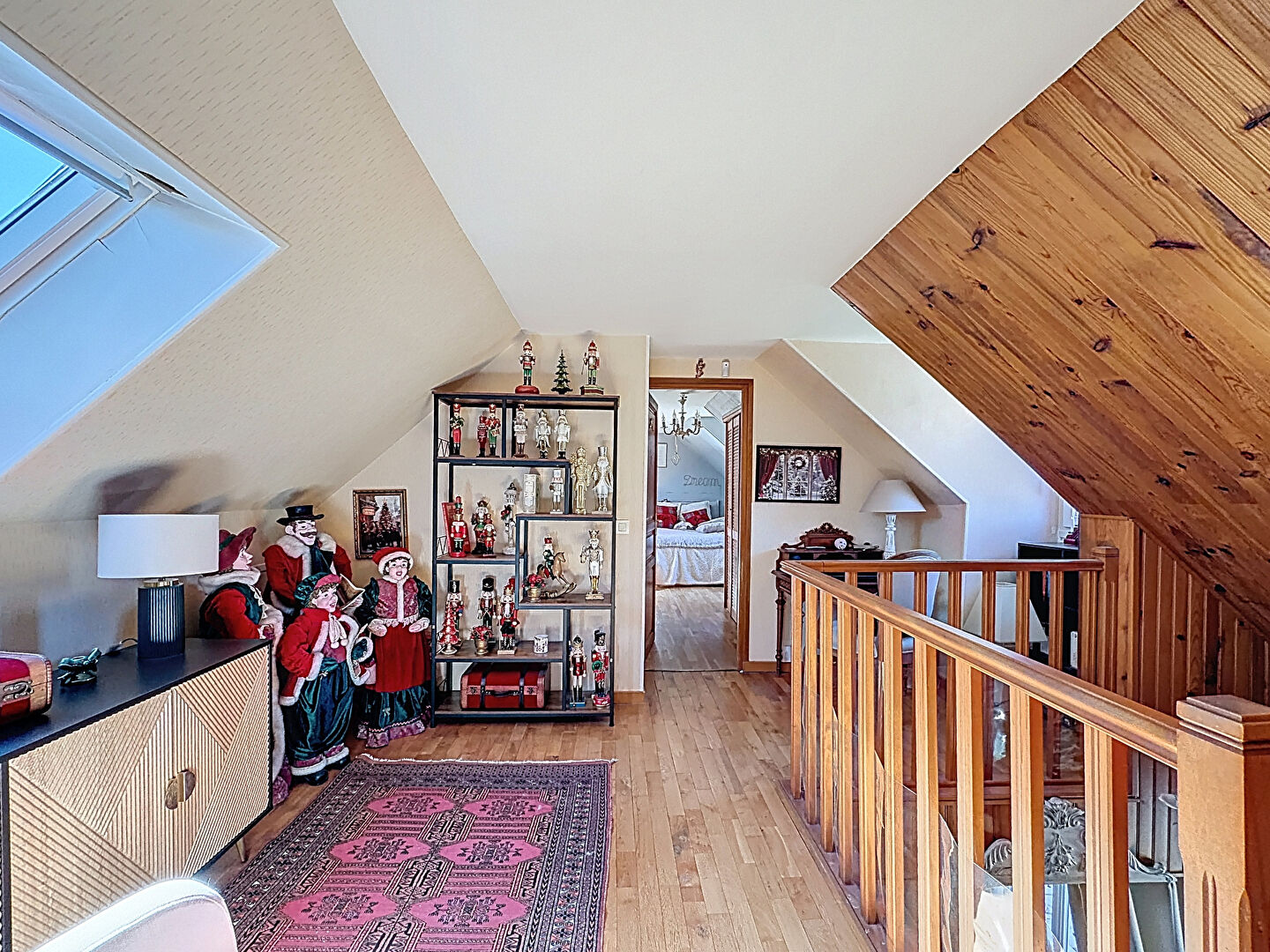 À l'étage, une agréable pièce palière distribue deux chambres supplémentaires en parquet ainsi qu'une salle de bain, et un WC.