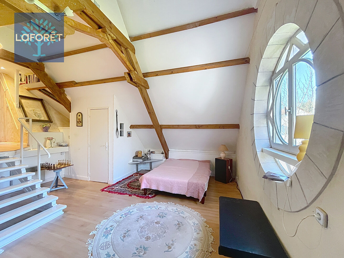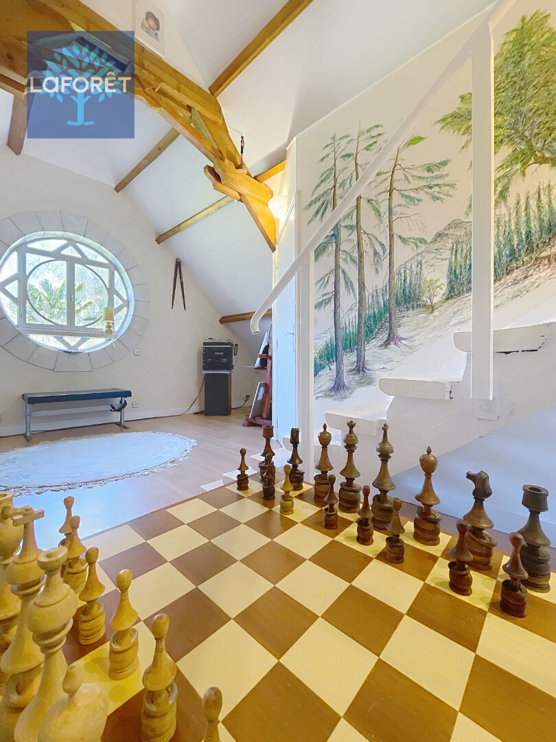 Nous vous proposons cette maison traditionnelle offrant de beaux volumes sur un terrain arboré de 2600m2 au calme.