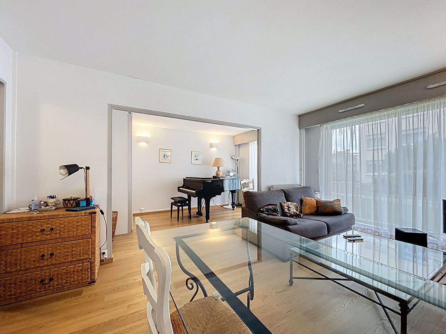 Nous vous proposons cet appartement rénové avec goût, de type T3 , aujourd'hui, en configuration T2 avec un très beau double séjour exposé plein sud avec accès sur un balcon.