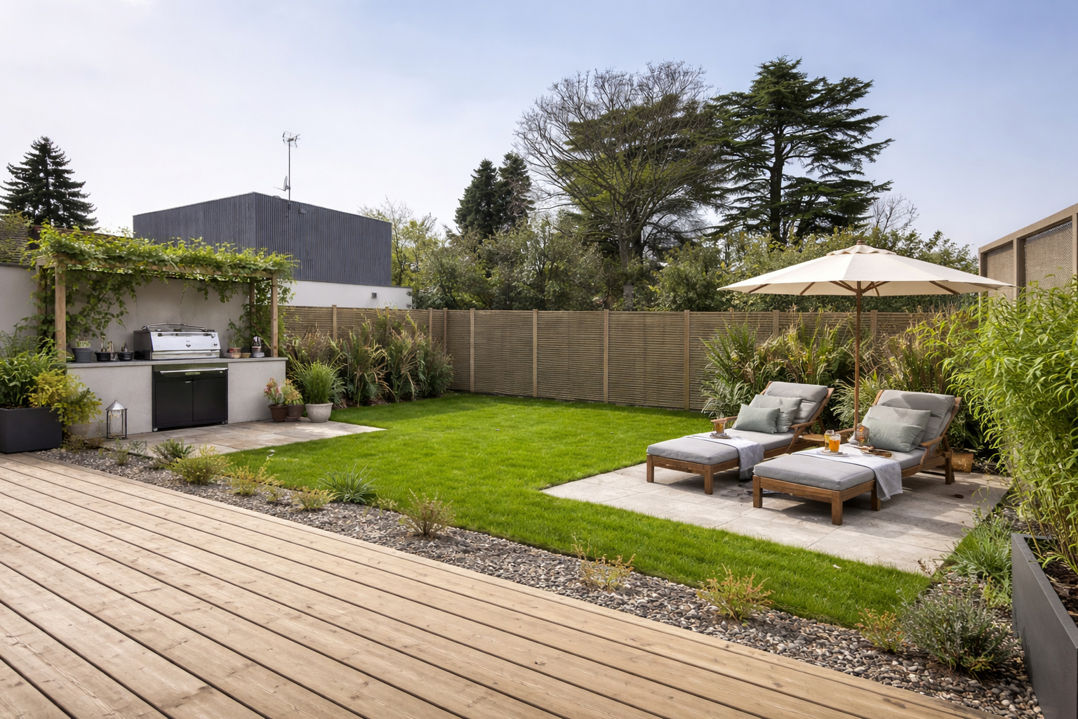 À l'extérieur, un jardin cosy et agréable nécessitant un minimum d'entretien. Au milieu d'un environnement boisé sans vis-à-vis.