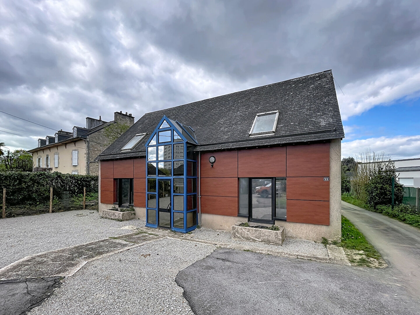 35600 REDON - LAFORÊT Immobilier Commercial vous propose en exclusivité ce bâtiment à usage de bureaux ou local commercial comprenant au RDC un sas d'entrée, une salle d'accueil, deux bureaux, une salle de pause et des wc. A l'étage, une mezzanine et deux bureaux supplémentaires. Belle luminosité. Terrain pour stationnement, belle visibilité sur un axe passant, entre le centre-ville et la zone Cap Nord.