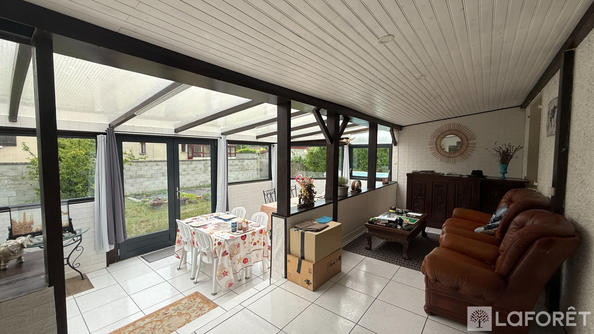 Il se compose d'une entrée avec couloir et WC, d'une cuisine indépendante, d'un séjour lumineux avec insert à bois ouvrant sur une vaste véranda de plus de 37 m², idéale pour profiter d'un espace de vie agréable en toute saison. Vous trouverez également une salle de bains, trois chambres confortables, ainsi qu'une pièce attenante, isolée et chauffée, pouvant servir de bureau ou de chambre d'amis.